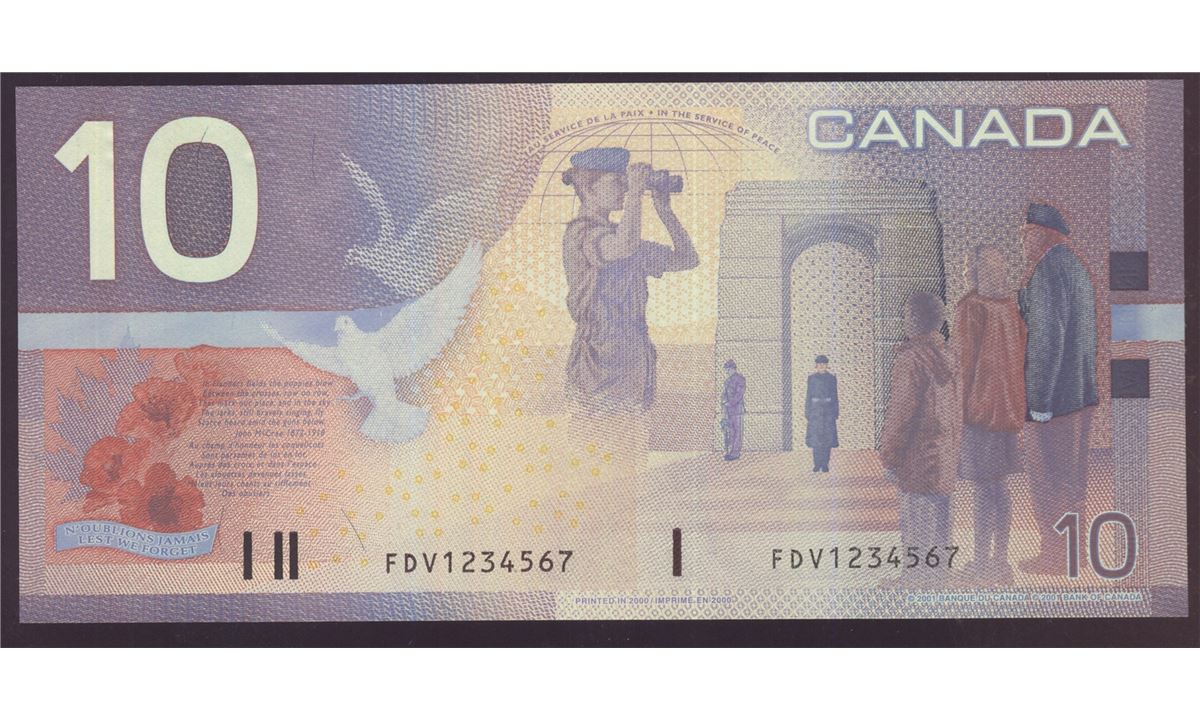 Ladder; 2000 $10 BC-63a #FDV1234567, PMG UNC66EPQ.