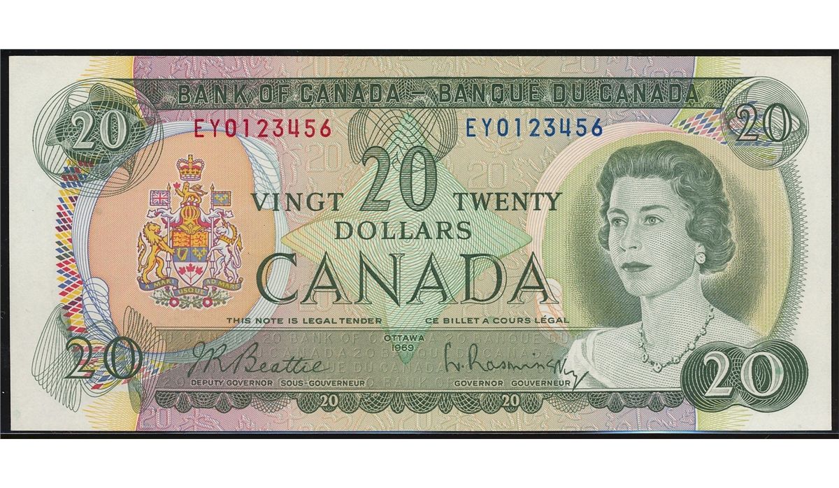 Ladder issue; 1969 $20 BC-50a #EY0123456. Original UNC.