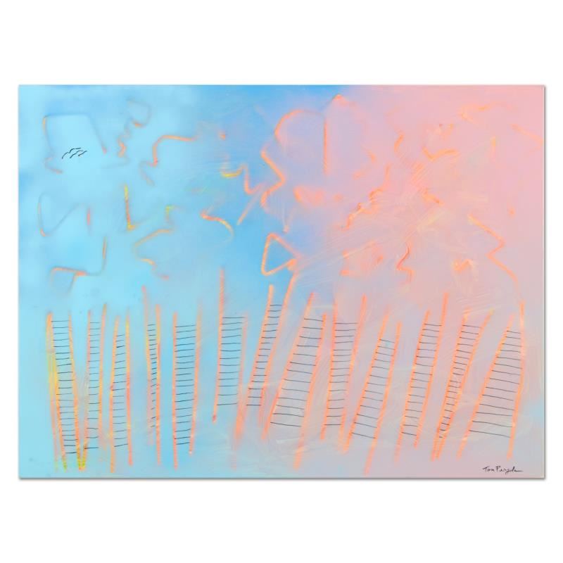 "Ladders" is an original mixed media on canvas by Tom Pergola, hand signed by the artist. This piece cones gallery wrapped. Includes Certificate of Authenticity. Measures approx. 40" x 30" (image).