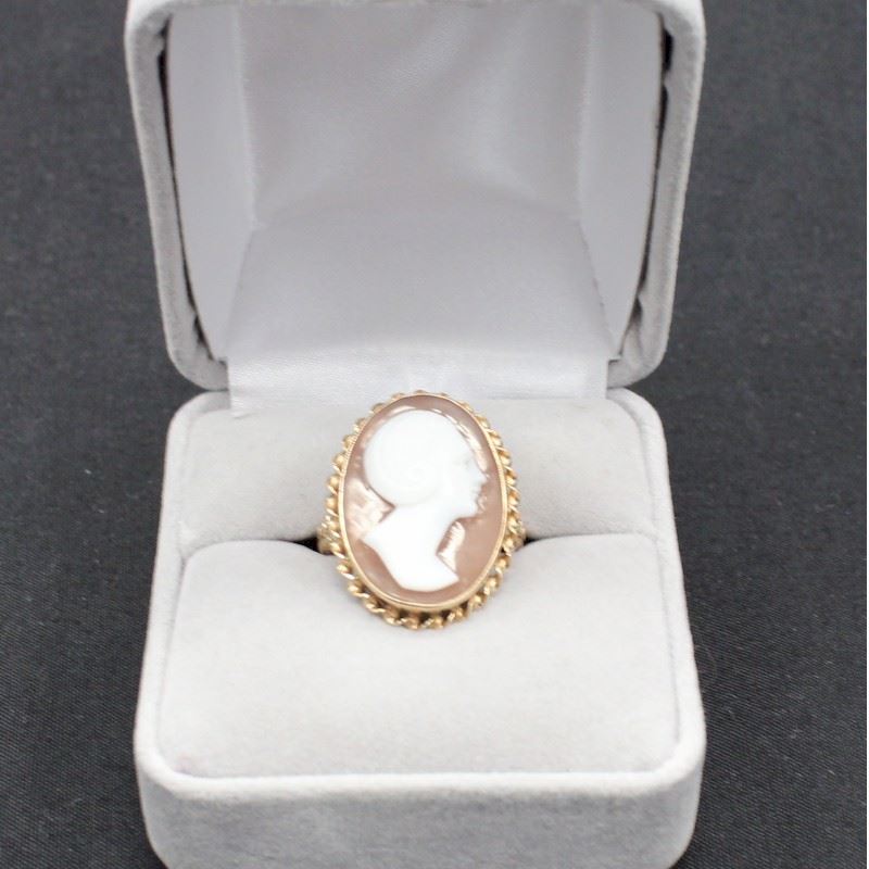 Ladies 10 karat yellow gold Cameo ring. Weighs 3.6 grams (size 6).