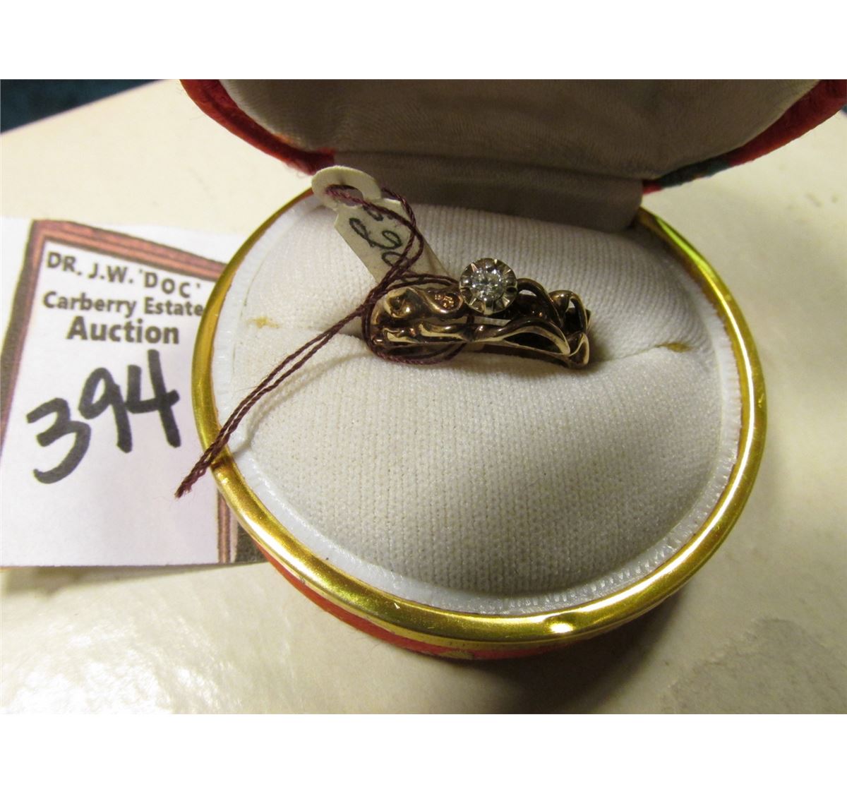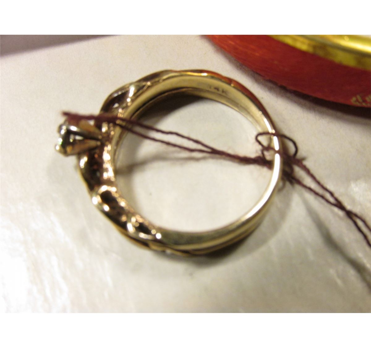Ladies 10K Gold Ring with a .10 carat Genuine Diamond in a Japanese silk covered box.