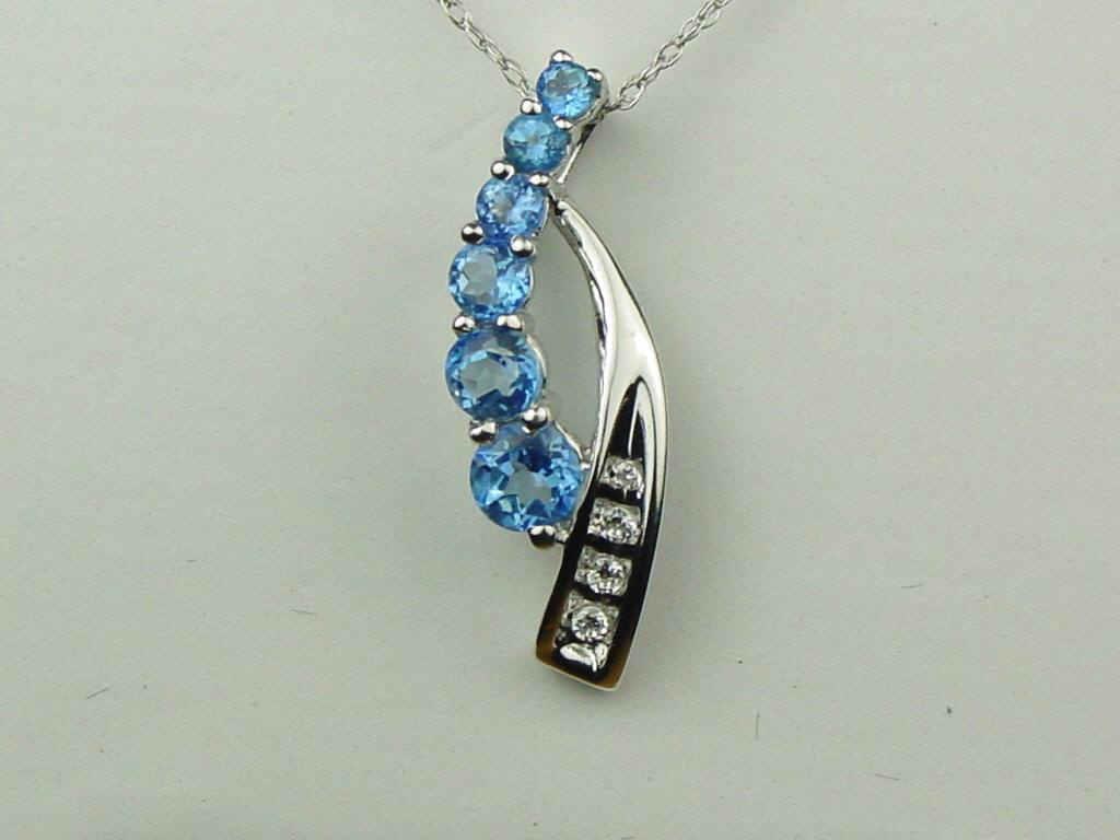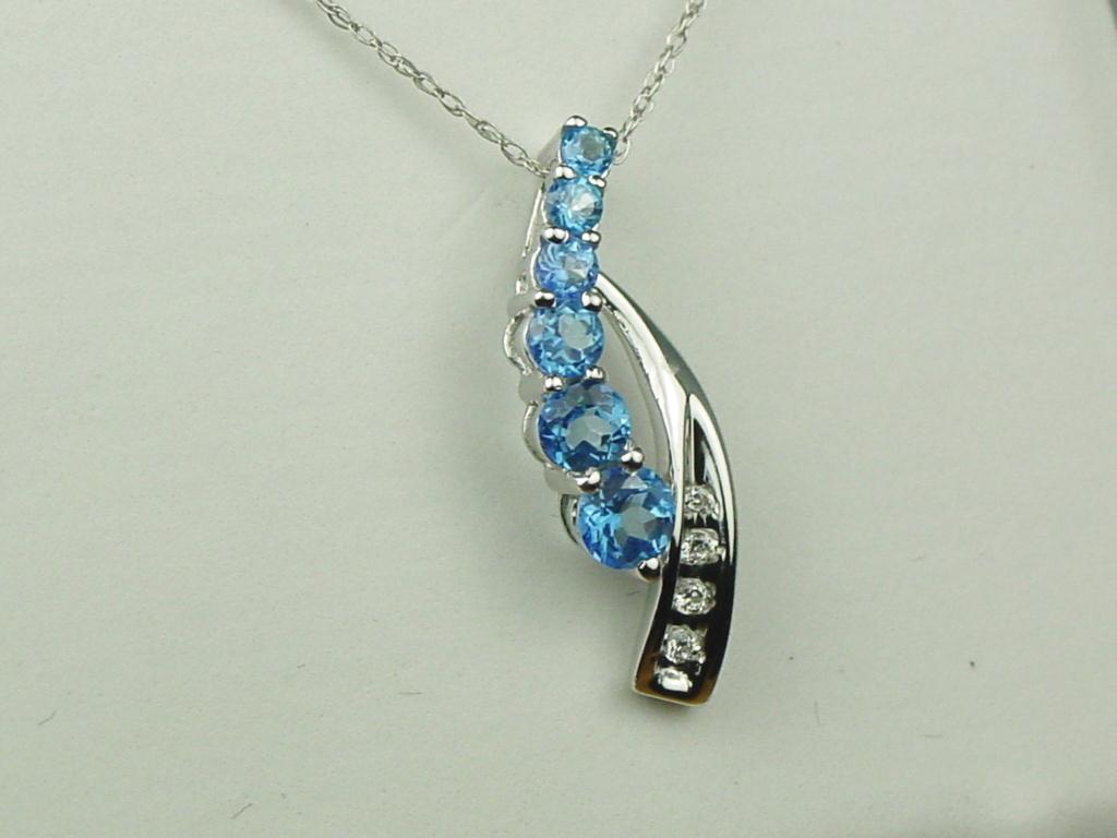 Ladies 10K WG "Journey" Design Pendant Set with fine blue topaz and diamonds weighing approx 1.50 carats. Retail: $995.00Set with fine blue topaz and diamonds weighing approx 1.50 carats. Retail: $995.00