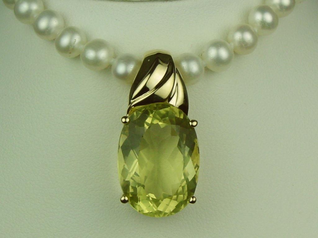 Ladies 10K YG Custom Design Pearl Enhancer Fine set with a large lemon quartz weighing approx. 8.00 carats. Retail: $1,450.00Fine set with a large lemon quartz weighing approx. 8.00 carats. Retail: $1,450.00
