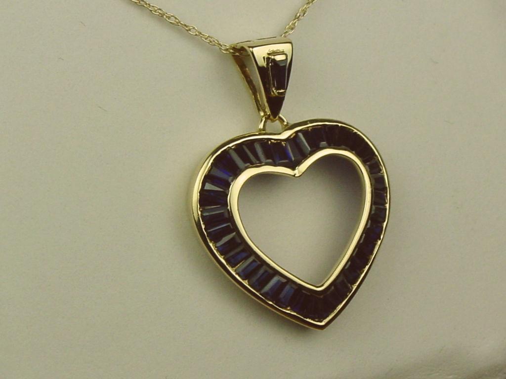 Ladies 10K YG Heart Design Pendant Custom made, channel set with over 1.00 carat in fine color blue sapphires. Retail: $1,450.00Custom made, channel set with over 1.00 carat in fine color blue sapphires. Retail: $1,450.00