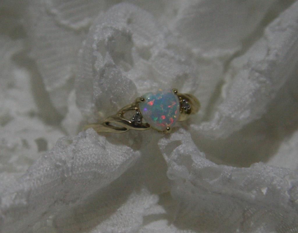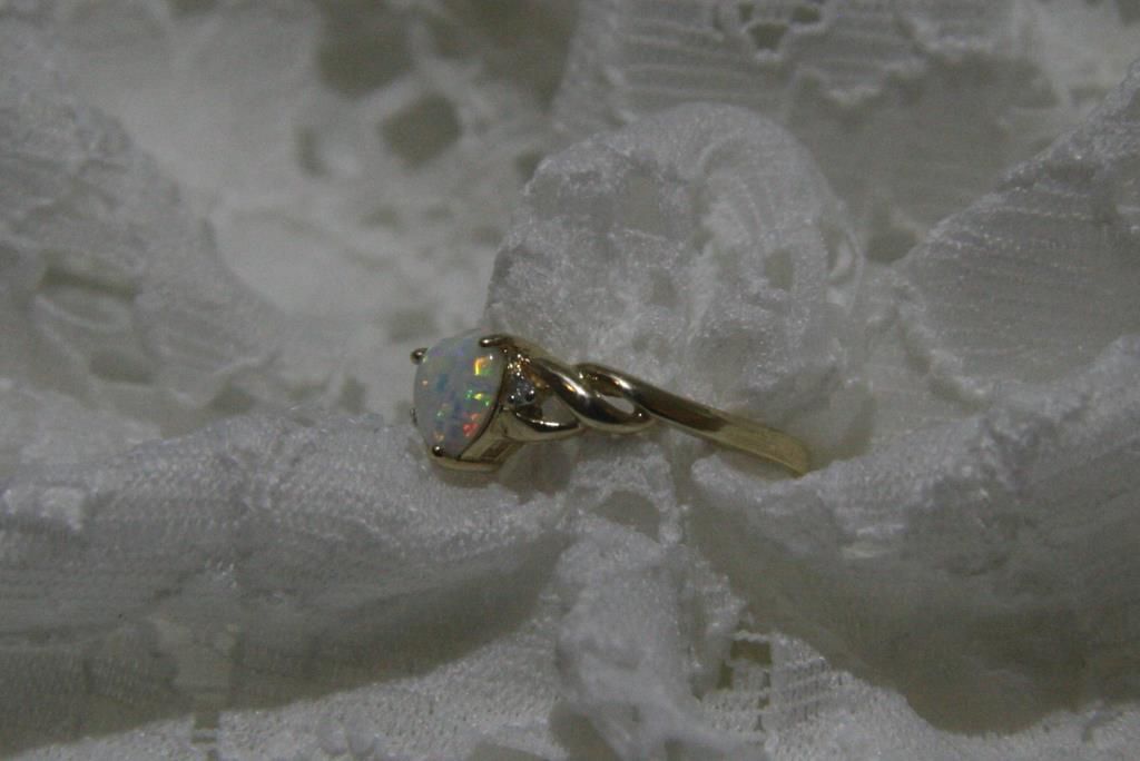 Ladies 10k Fire Opal & Diamond Ring 2.0 Grms