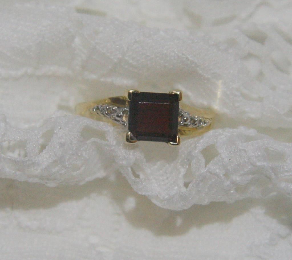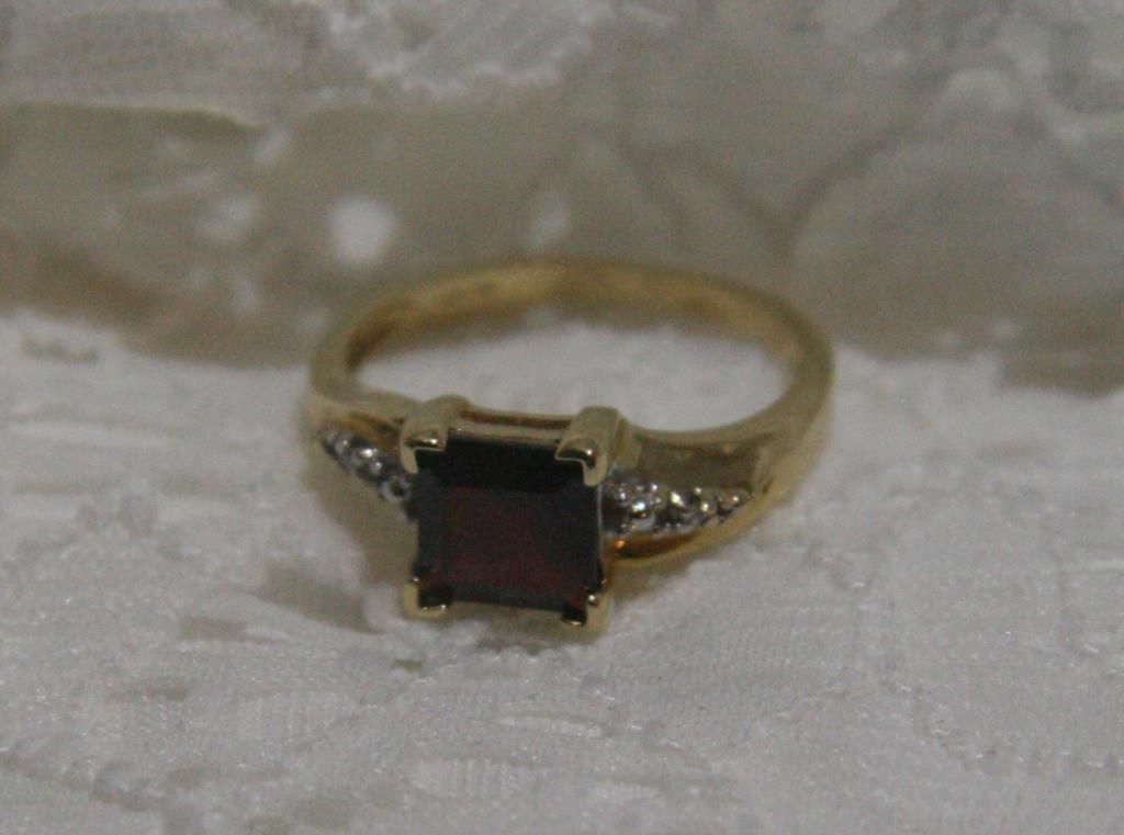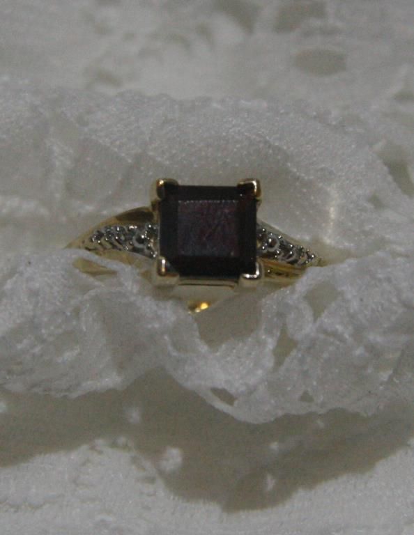 Ladies 10k Garnet & Diamond Ring 2.2 Grms