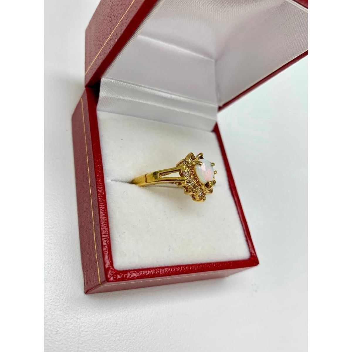 Ladies Size 10 .13ct Pear Cut White Opal set in 18K Gold Plated Ring. The Opal is the birthstone for October. Please view photos for further details. Â