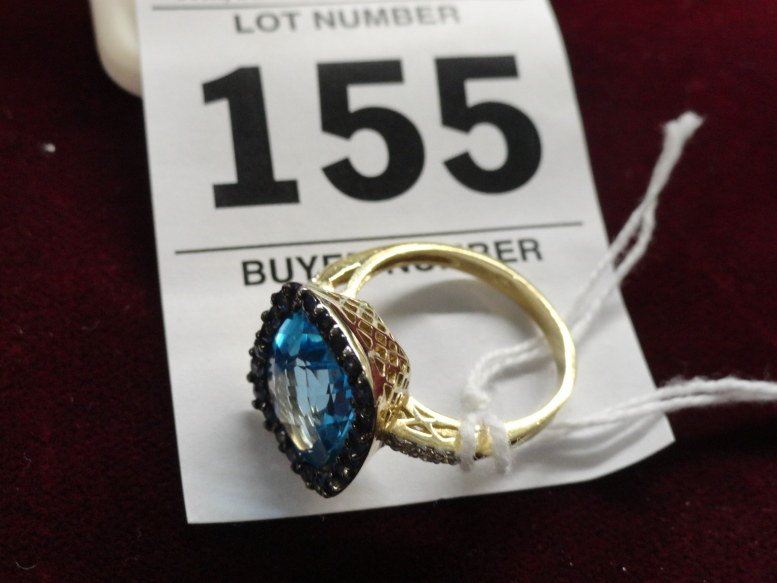 Ladies 14K Yellow Gold, Blue Topaz, Sapphire & Diamond Ring