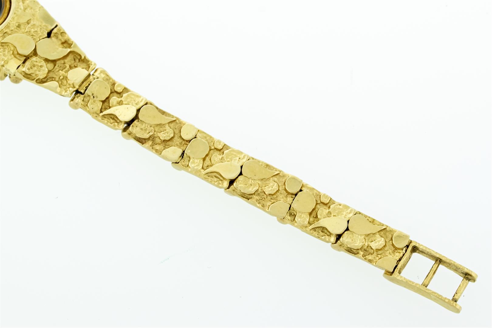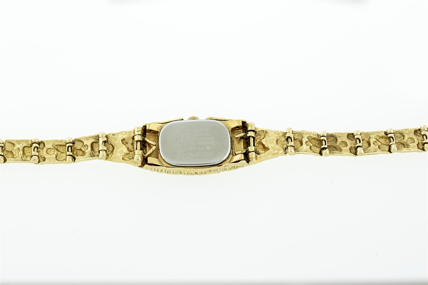 One Ladies Seiko Quartz 14K Solid Yellow Gold Nugget Wristwatch, This Watch Has Brand New Battery & Has Been Electronically Tested, 14K Solid Yellow Gold Case: 16MM X 26MM , Gold Seiko Crown, Bezel: 14K Gold Seiko Bezel, Seiko Crystal: Sapphire Crystal, Seiko Hands: Yellow Hands, Movement: Battery Operated Seiko Quartz Movement, Seiko Dial: Black Dial With Index Hour Markers, Model: Seiko Gold Nugget Wristwatch. Condition: G-6 Extra Fine. Bracelet: Solid 14K Yellow Gold Seiko Gold Nugget Bracelet. Bright Polish. Fits Up To 6.5 Inch Wrist, Gold Jewelry Clasp, This Watch Has Time Tested And Is In Excellent Condition. It Is Free Of All Scratches And Dents.