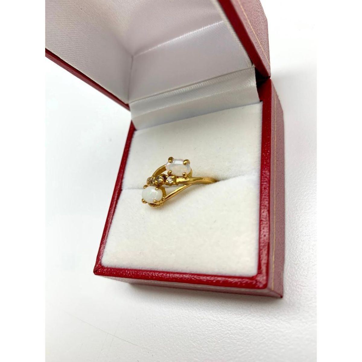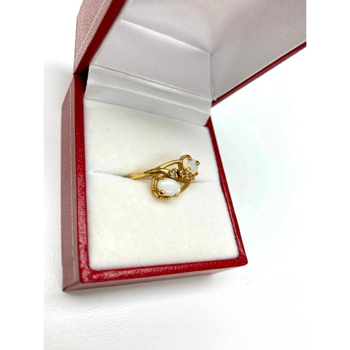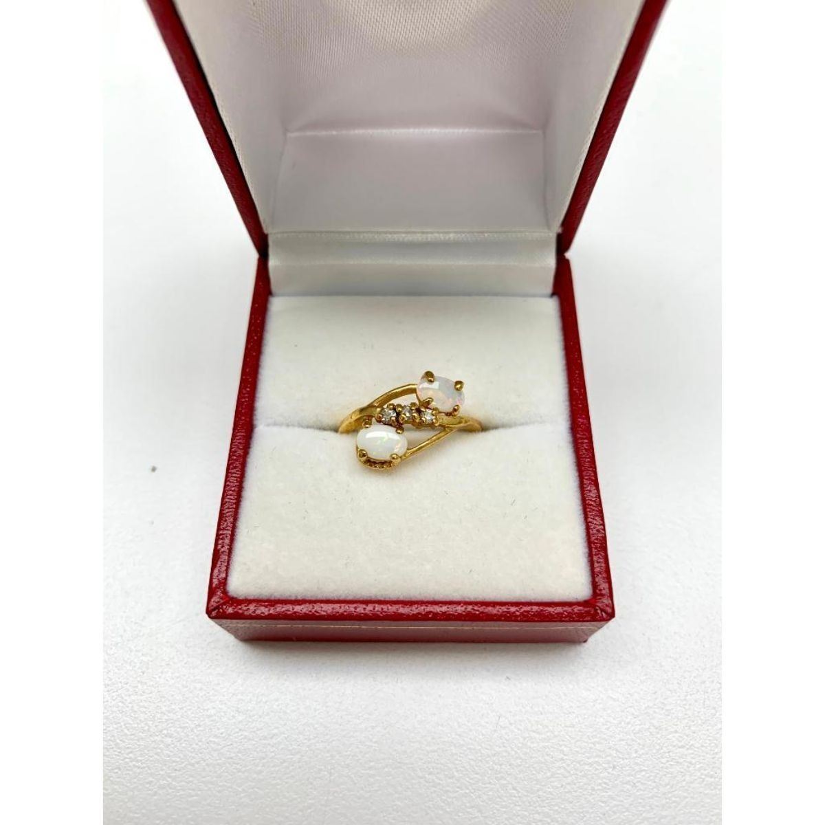 Ladies Size 5 .14ct Oval Cut White Opal set in 14K Gold Plated Ring. Each stone in this piece has a ct of .07. In the Middle Ages, opals were believed to be bestowed with all the positive properties of coloured gemstones due to its rainbow-like play of colour. Please view photos for further details.Â