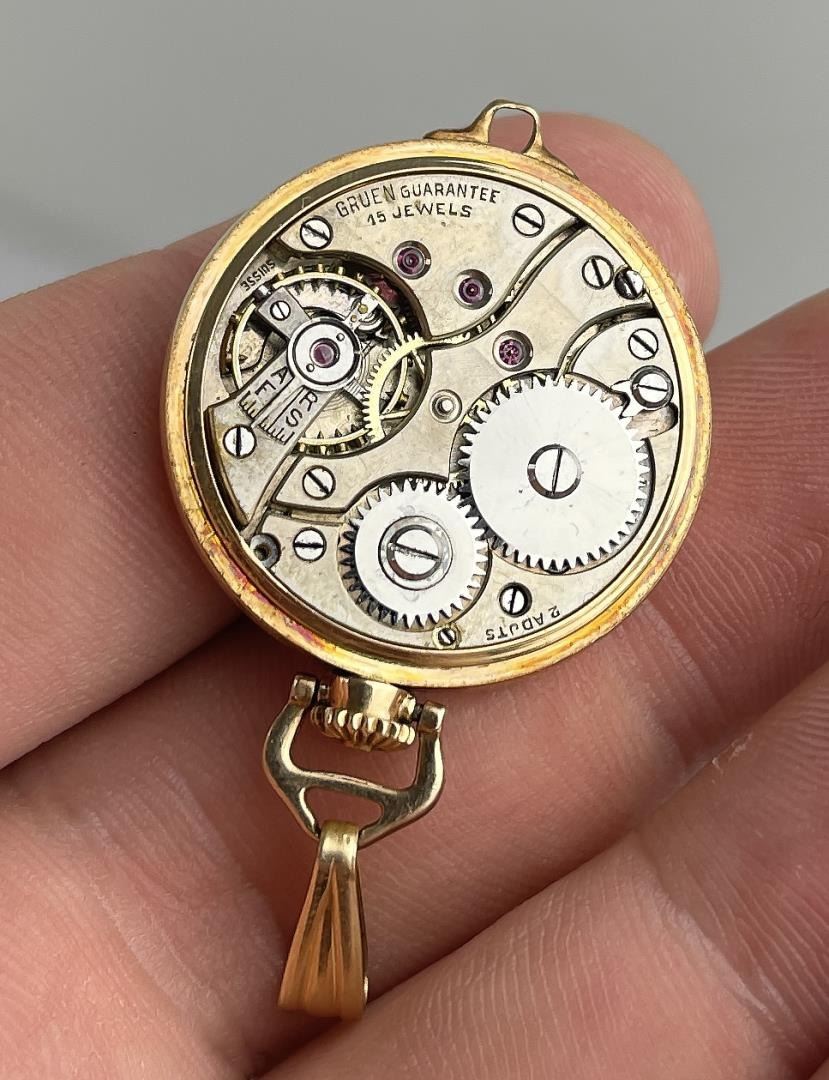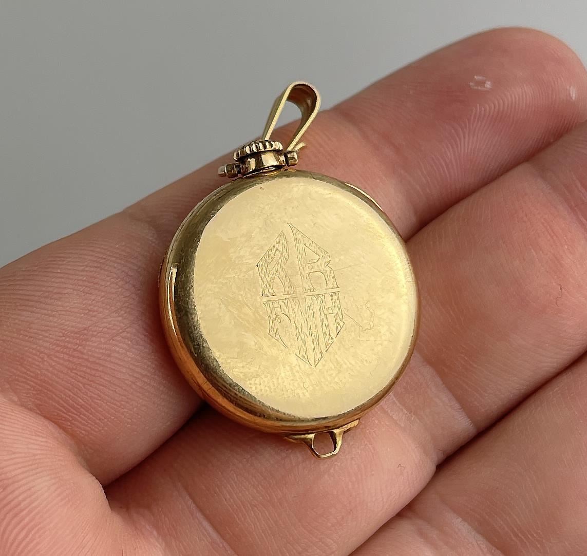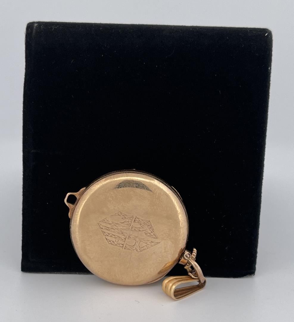 Nice watch. 14k Yellow Gold. Weight is 13.9 grams.