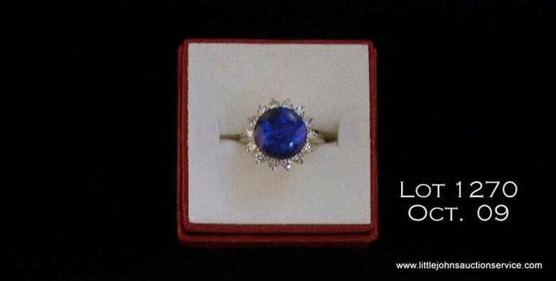 Ladies 14kt white gold black and diamond ring, 5 grams. Opal is approx. 2.5 carats also accented with 14 full cut fine diamonds having an estimated total weight of approx. 0.70 carat. Est. $650 - $1,300
