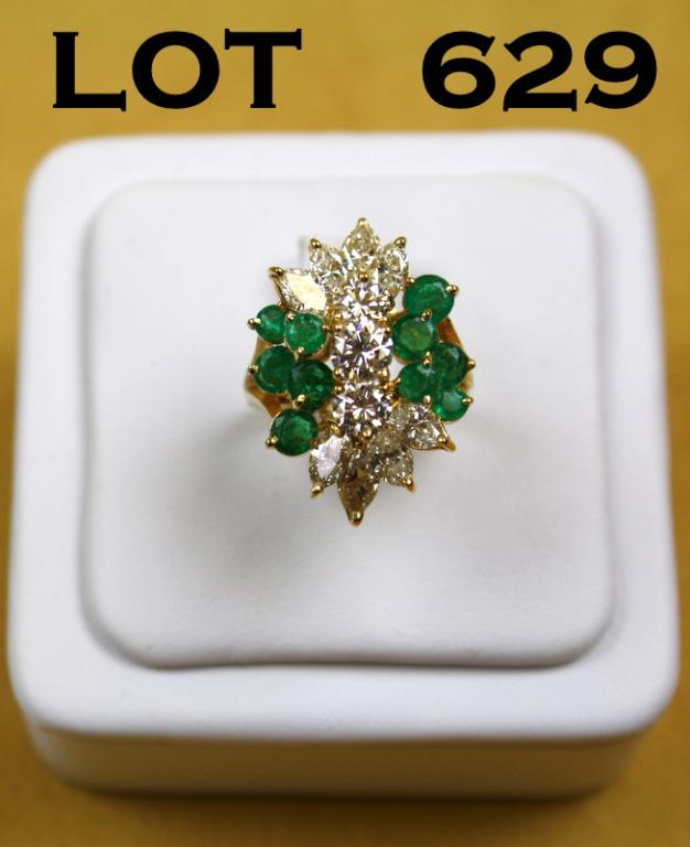Ladies 14kt yellow gold ring, 7 grams, with 1.00ct in emeralds and over 4.75ct in fine diamonds. Est: $2,475 - $4,950.