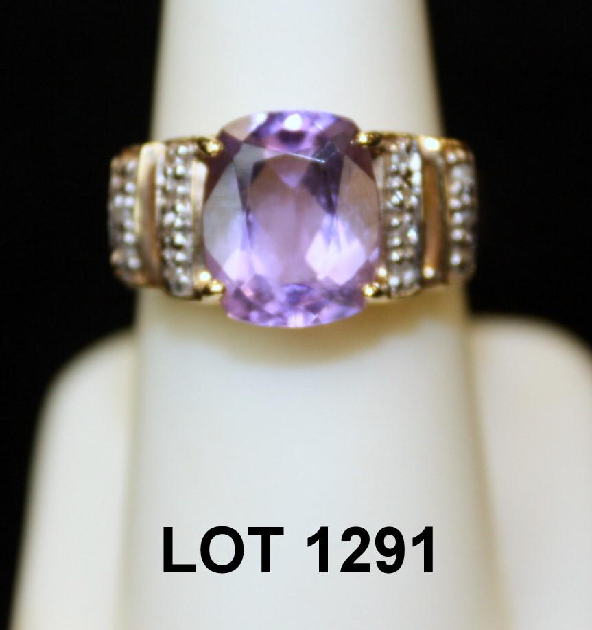 Ladies 14kt yellow gold ring set with 5ct oval amethyst and .1ct in diamonds.: Est: $1,000 - $1,200
