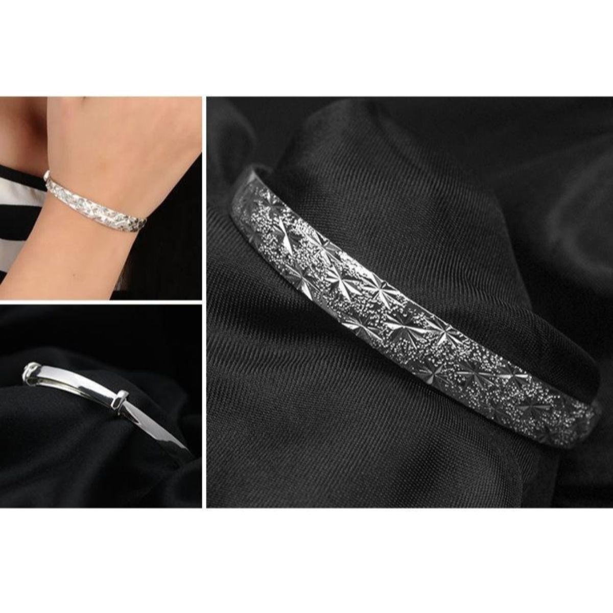 A Ladies 925 Silver Cross Cut "The Sky Star" Bracelet Bangle. A Special Design For A Ladies Bracelet That Reflects The Light In Multiple Directions To Catch The Eye. "The Sky Star" Design Was Made To Impress When Worn On Formal Nights Out With Friends Or Colleagues. Bracelet Has A Loop Over Clasp Design Making Is Easy To Take On & Off. View Photos For Further Details.