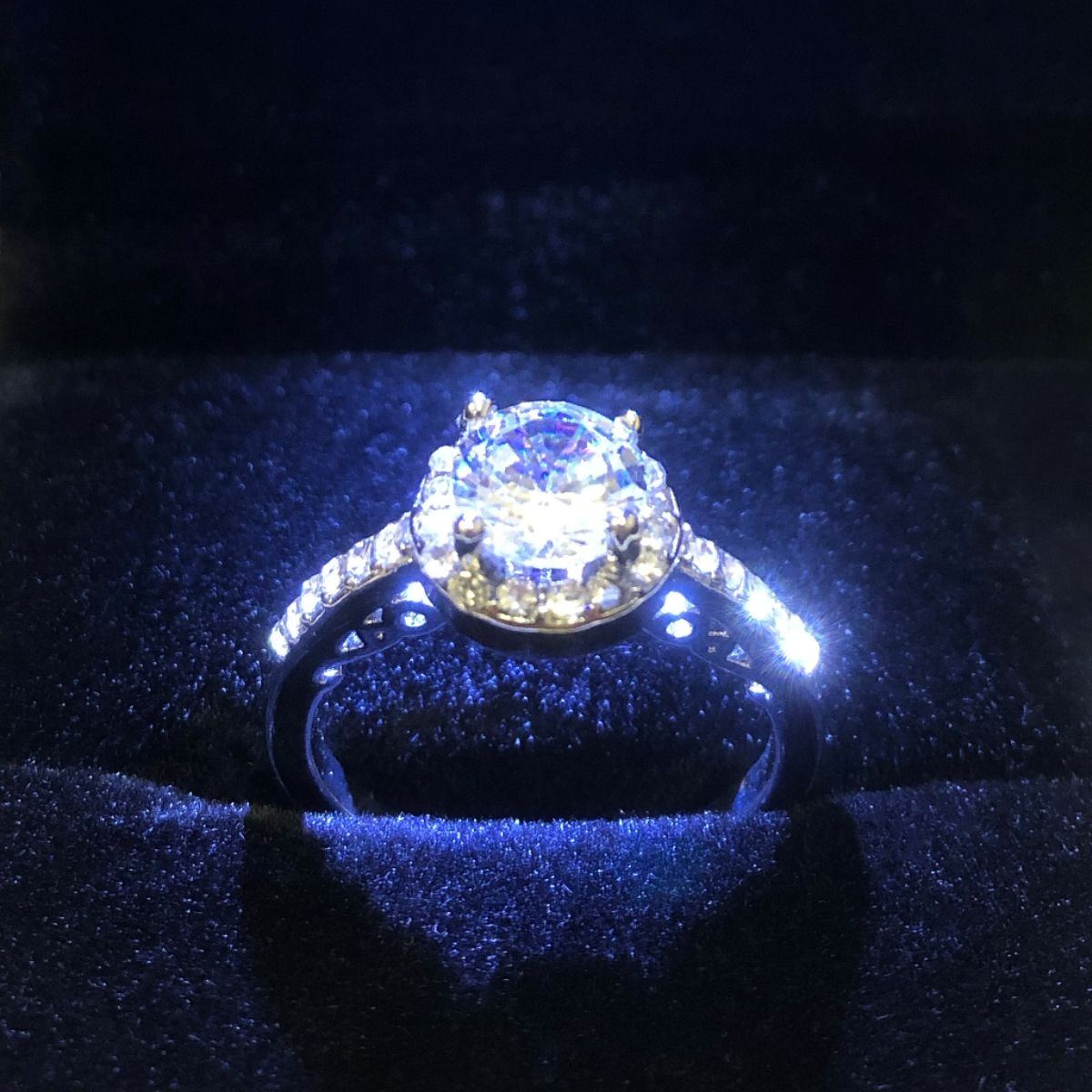 A simple and beautiful 925 Silver ring faceted with a 2 Carat CZ Diamond. View Photos for Further Details.Â