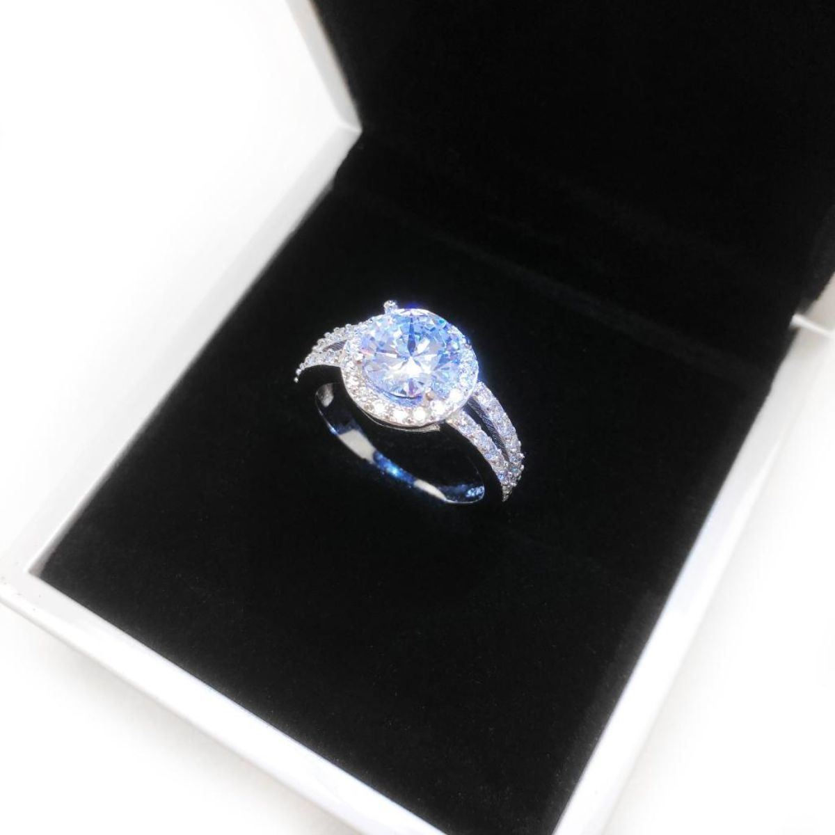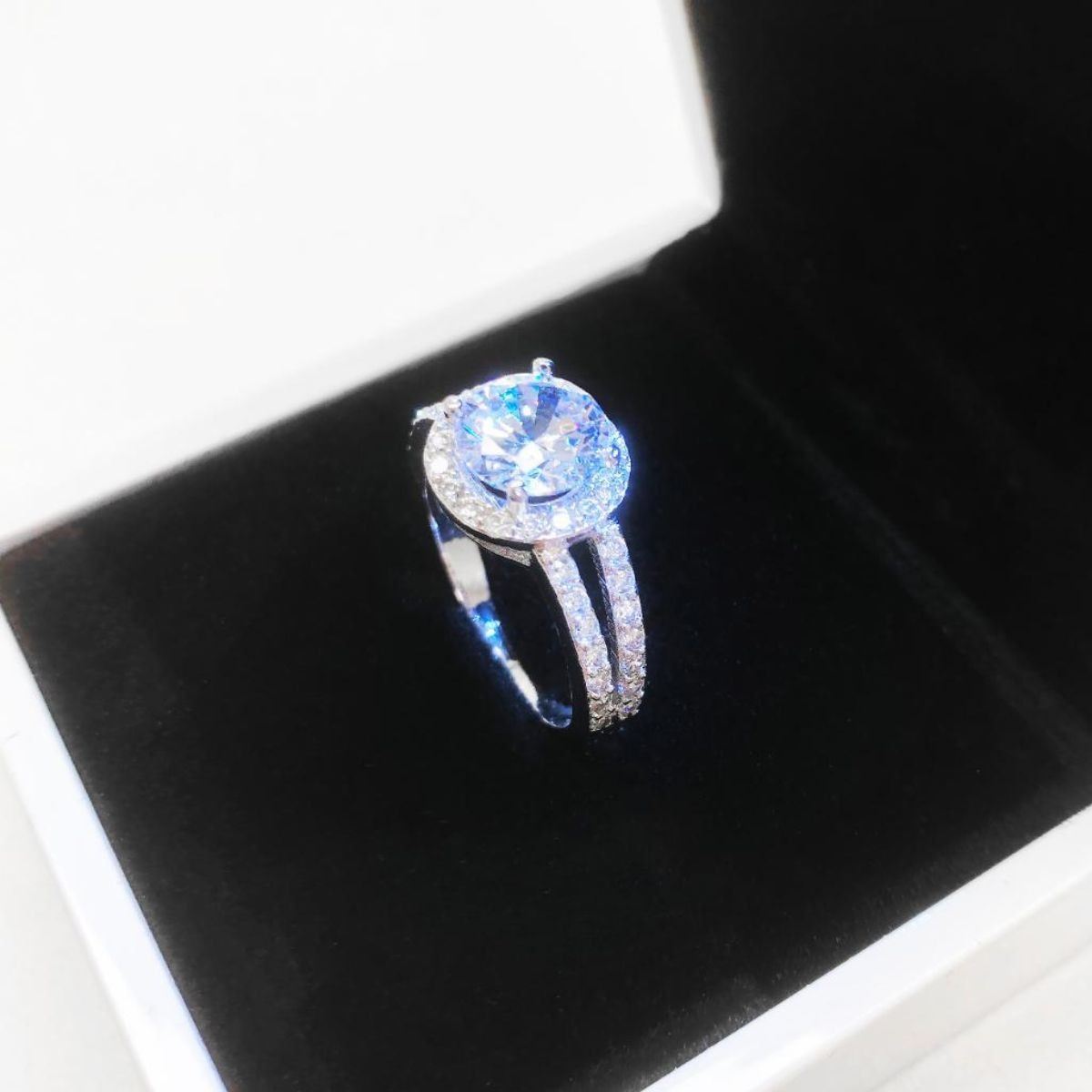 A Simple And Beautiful 925 Silver Ring Faceted With A 2 Carat CZ Diamond. Simply Stylish And Beautiful, You Will Never Get Tired Of Wearing This Glamorous Ring. View Photos for Further Details.