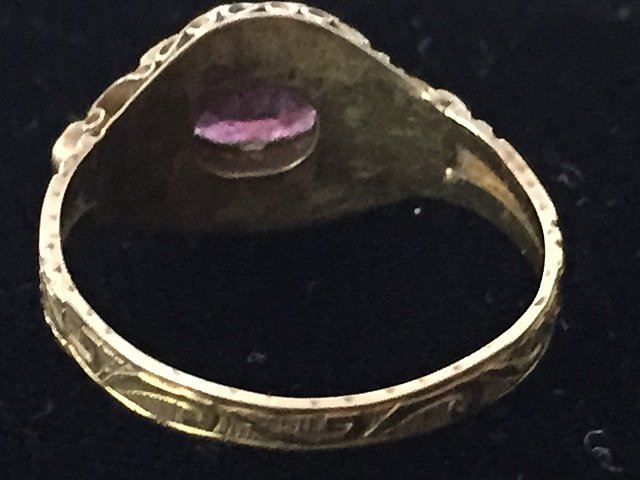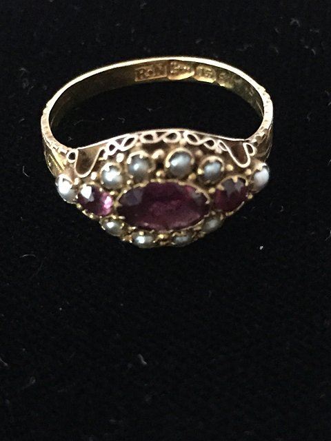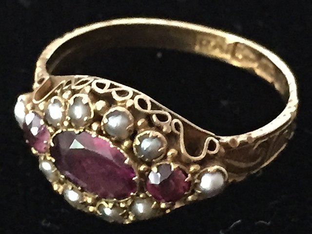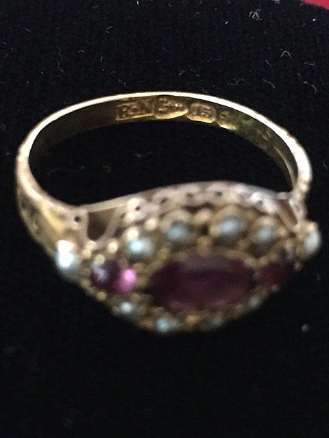 European Hallmarked Estate Ladies Ring, Amesthyst with seed pearls.