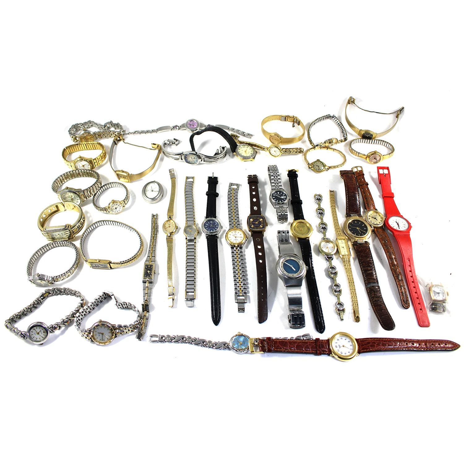 Thirty-seven (37). Various origins. 1970s-2000s. Caravelle, Bulova, Pulsar, Seiko, etc. Gold plated, stainless steel. 17mm to 30mm case diameters. Running watches have not been tested for timekeeping accuracy and may require adjustment. The fact that a watch has been described as "running" provides no guarantee of its ability to continue to do so.