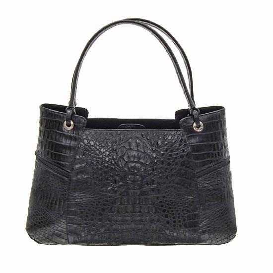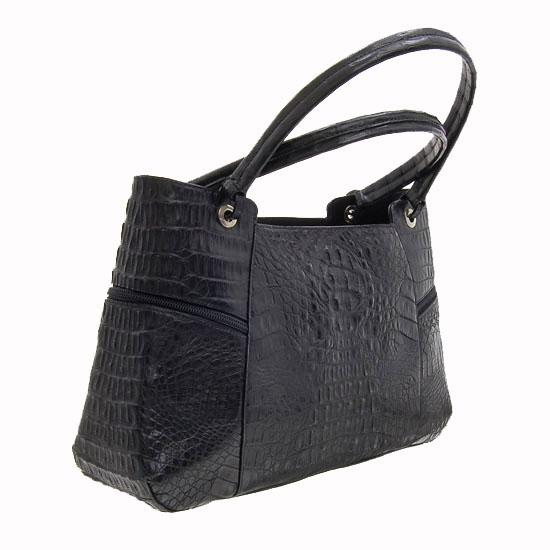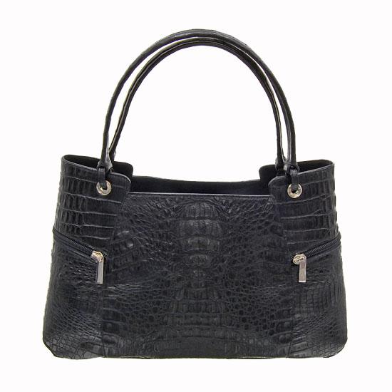Excellent workmanship by high-end manufacturer made from rare large back pelt, 3 main compartments inside (one zippered) with multiple smaller compatrments; 2 zippered compartments outside, 14" wide with protective storage bag;