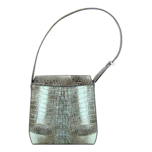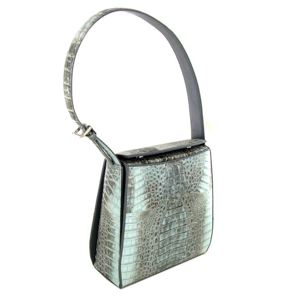 Excellent workmanship by high-end manufacturer made from large hides; main compartment with multiple smaller compatrments inside; 10" wide; comes with protective storage bag