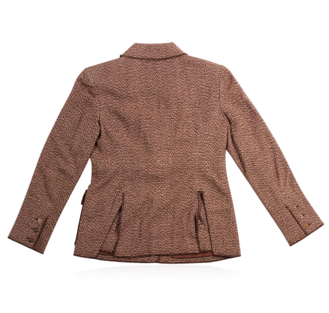 One Ladies Chanel Jacket. The outside of the jacket is composed of 38% silk, 32% cotton, 26% wool, and 4% nylon. The inside is composed of 95% silk and 5% spandex. The jacket is in good condition. Made in France. Size as marked 42 (France).
