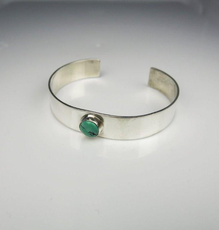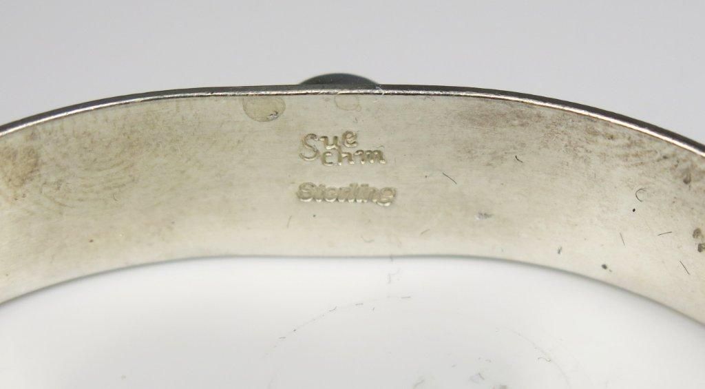 Turquoise and sterling silver. Artist signed "Sue chm"