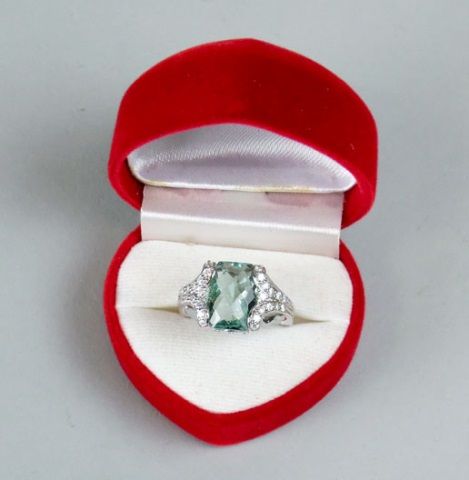 fine sterling silver mount and set with approximately 4ct. blue topaz and accented with Cz's, size 7.5