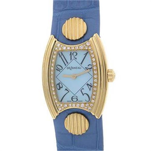 <tr><td>Title:Ladies DeLaneau Princess Gold Diamond Bezel</td></tr>