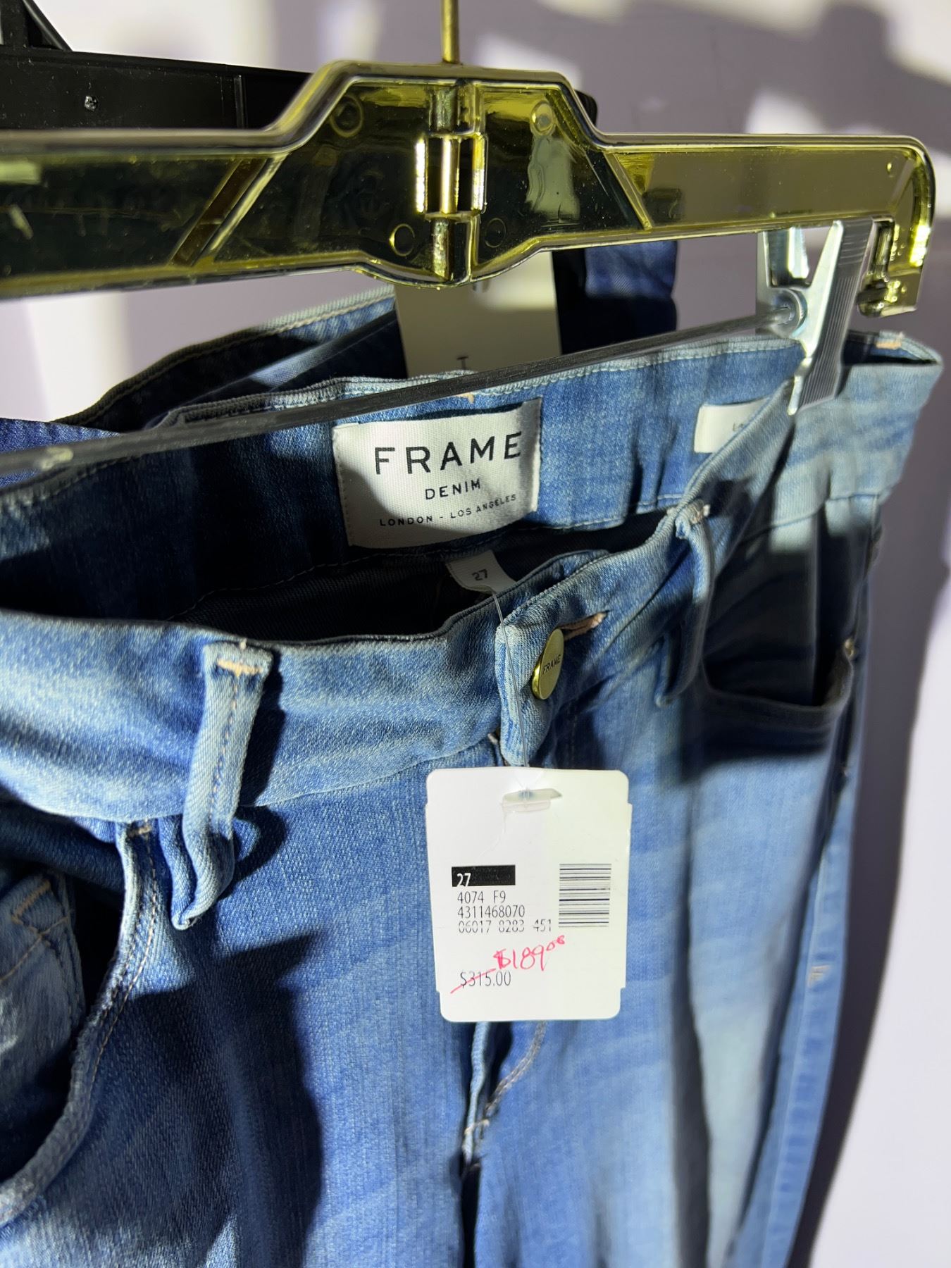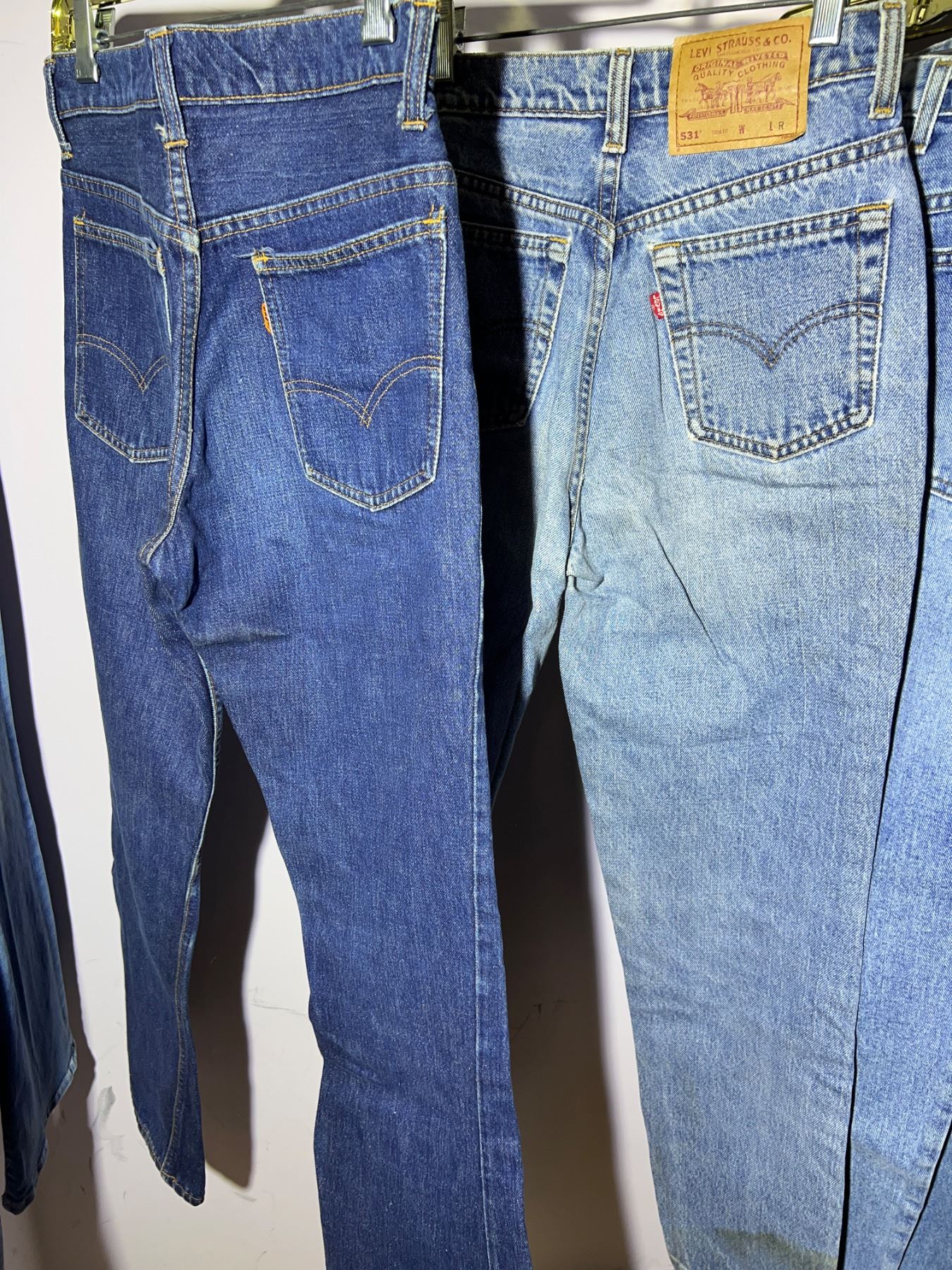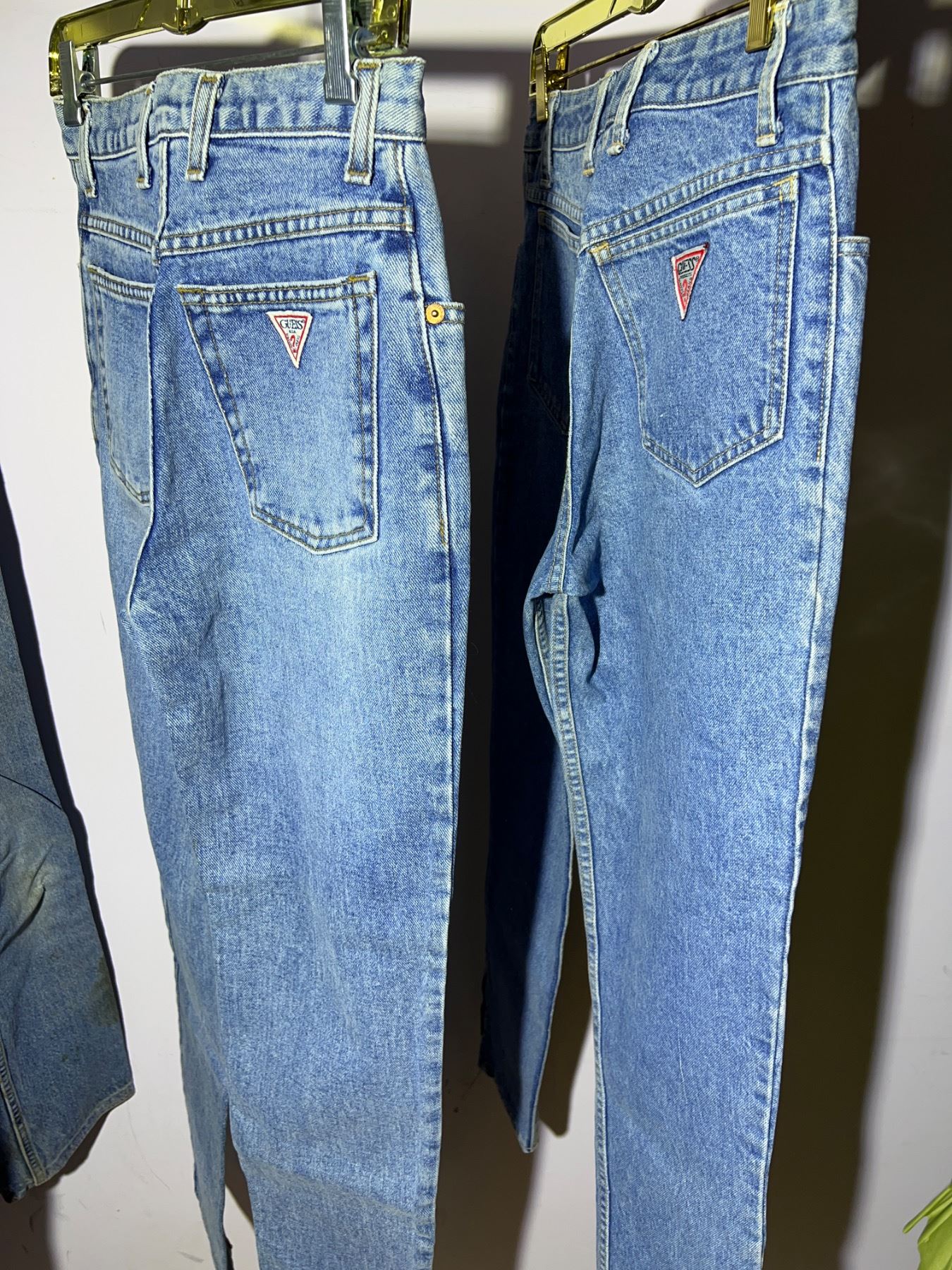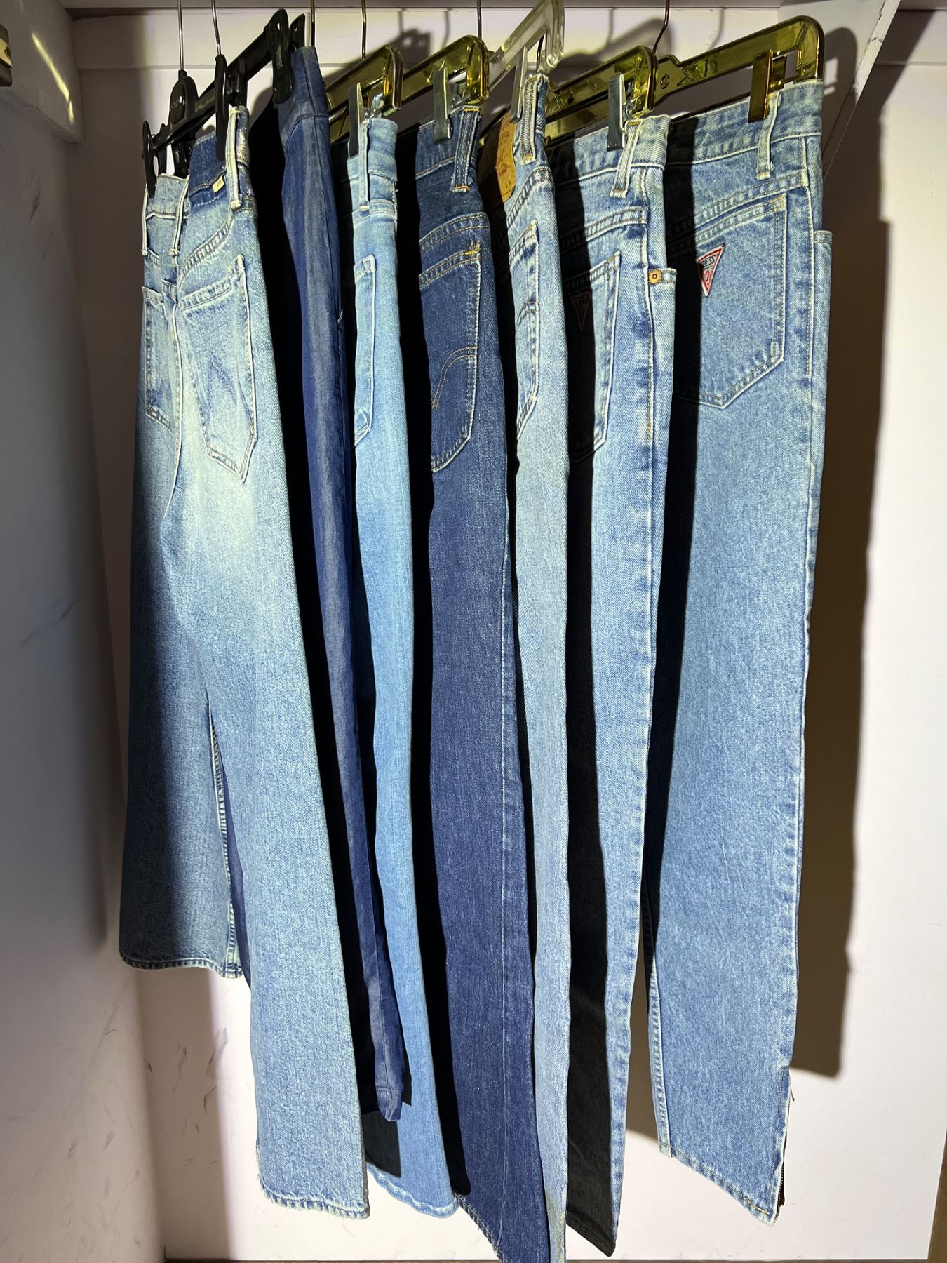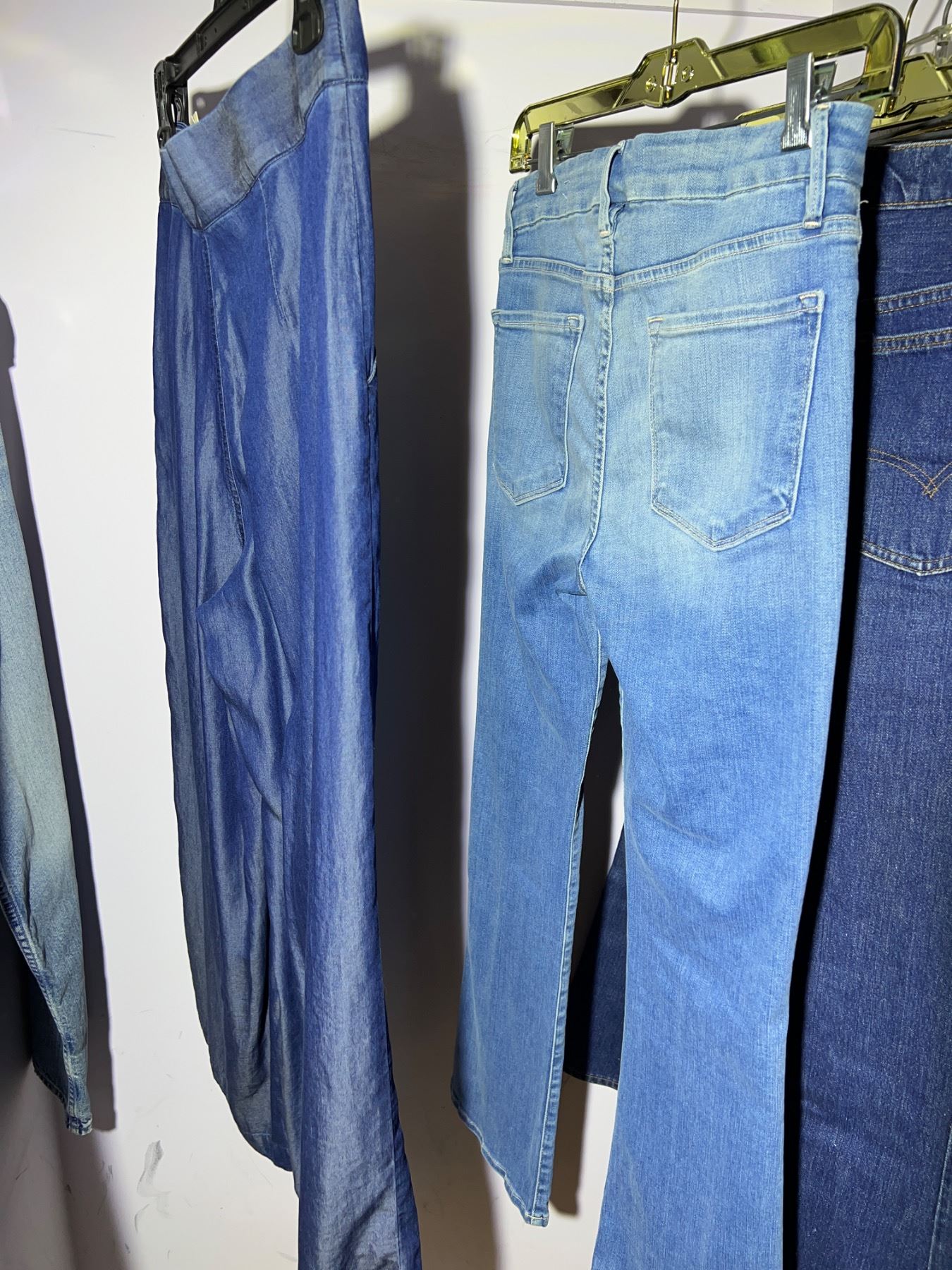 Includes, Mother Superior size 26, Halston size small, Frame Denim size 27, Two pairs of Levi's size 27, Two pairs of Guess sizes 27 & 28
