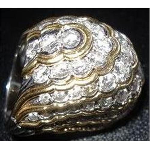 Breathtaking Ladies 18K Yellow and White Gold Diamond Ring set with (74) Diamonds weighing 6.00 Carats total weight. All Diamonds are Very Fine White in Color, VVSI in Clarity and very fine modern brilliant cut. Size 6 but can be resized by your jeweler.