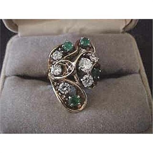 18 KT Yellow Gold Free Form Mounting ** Contains Numerous Stones Approx. 1.84 Carats Diamonds and .80 Carats Emeralds. ** A 1995 Certified Gemologist Appraisal of $6,225. (Copy Available)