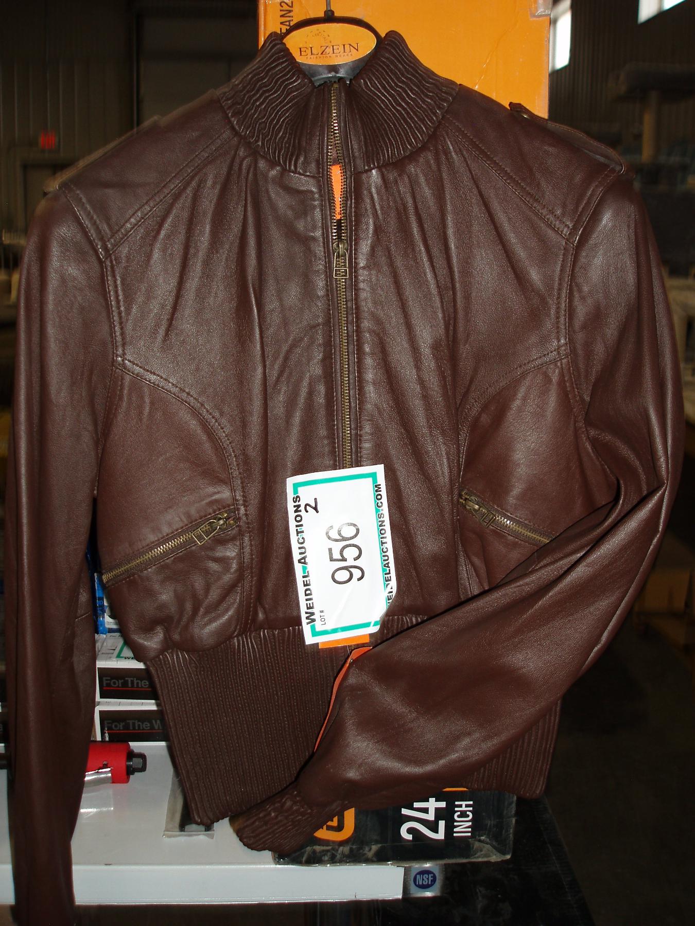 Ladies ELZEIN Brown Leather Jacket with fitted collar & waist - size L