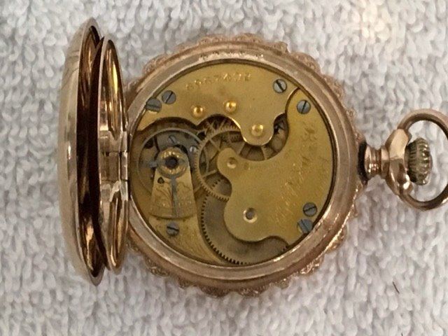 In Keystone Gold Filled Scalloped Edge Hunting Case. O Size, 7 Jewels. Running