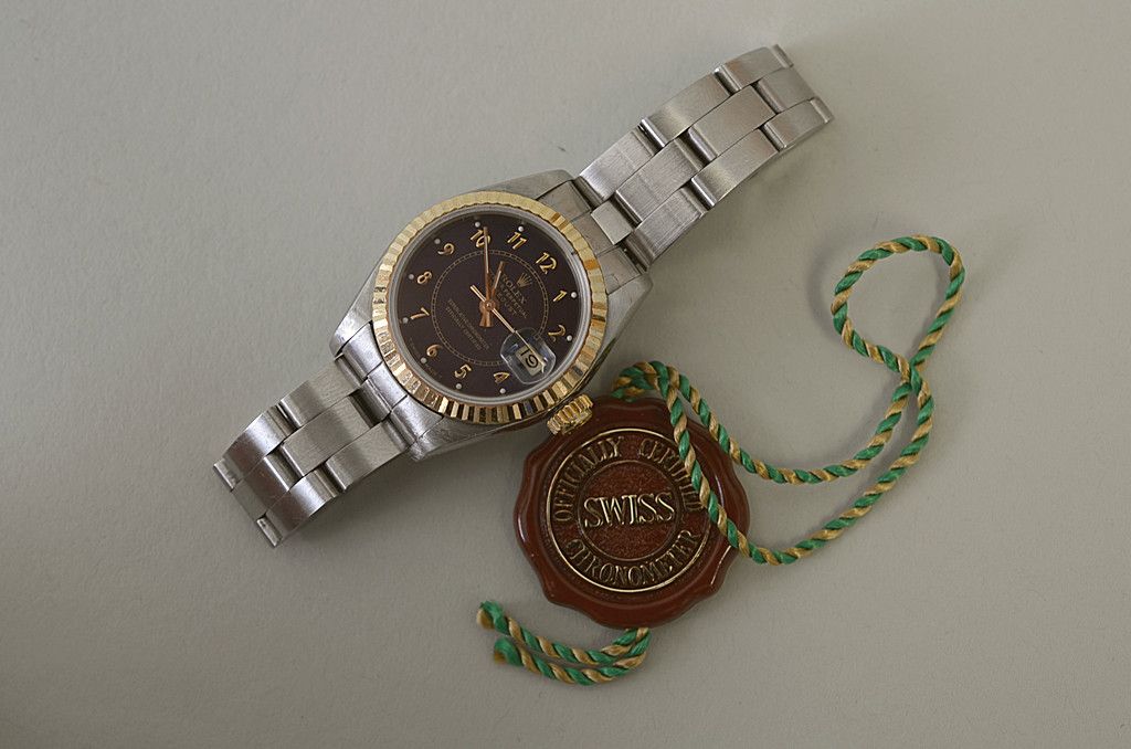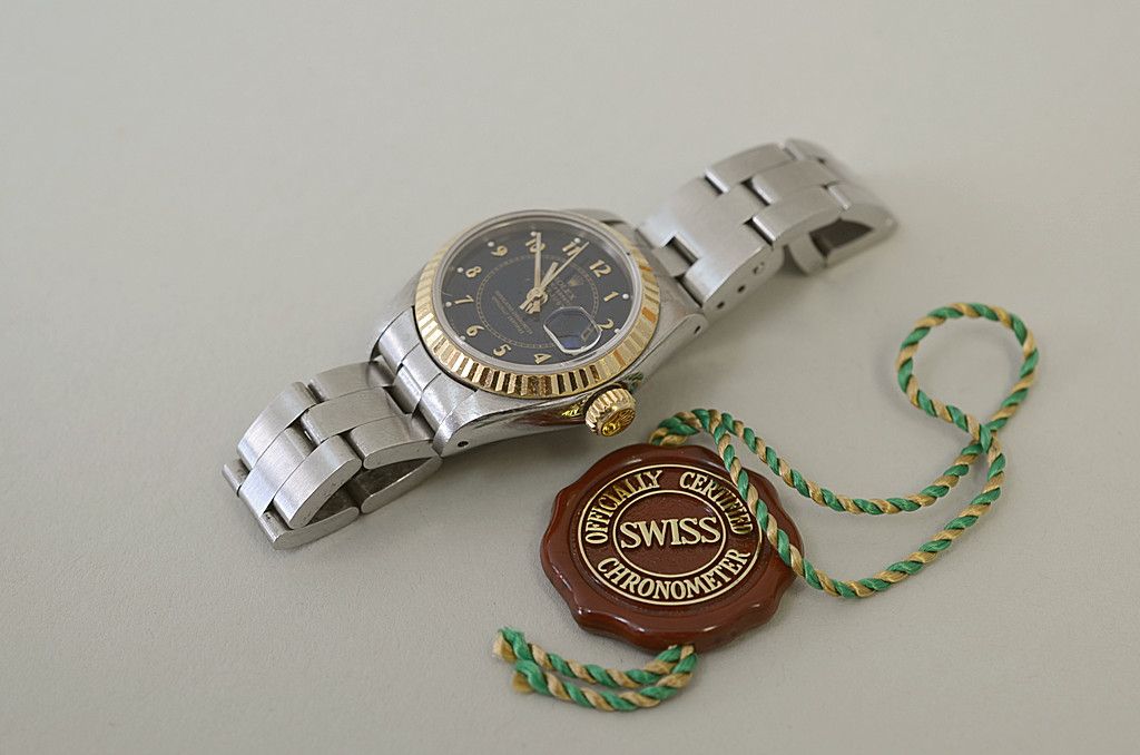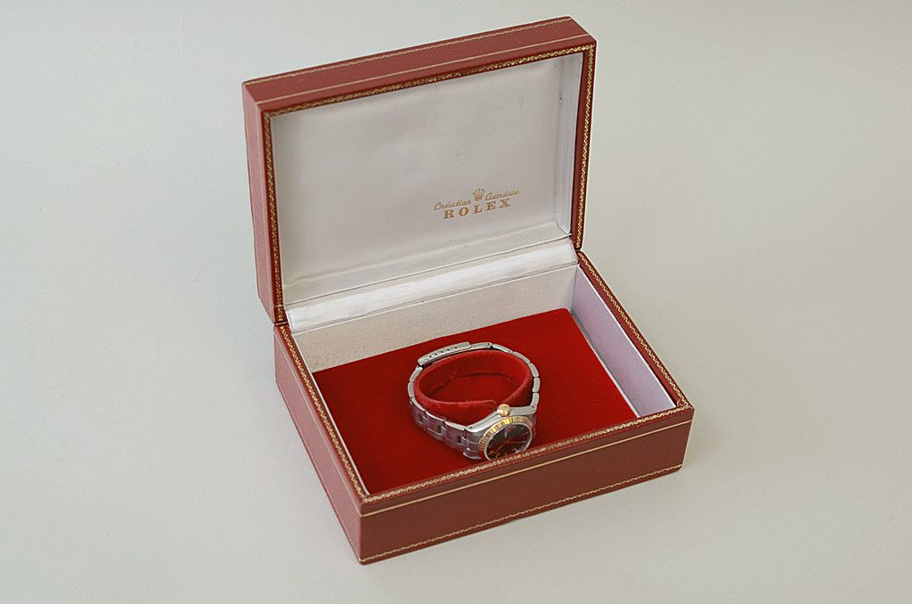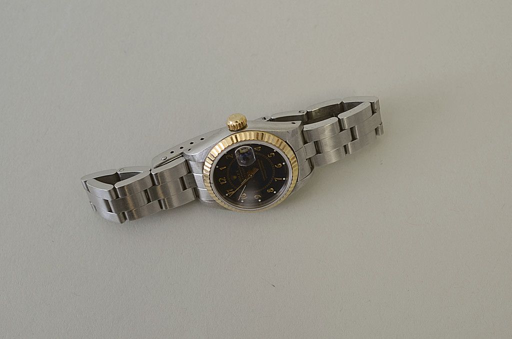 Ladies Estate 2-Tone Rolex Oyster Perpetual Watch with Box. 2 Tone Head. Dark Blue Face. Approx 10 years old - no papers. Date in dial, Date Just, Stainless Steel bracelet (3-link). Head 90%. Band 95%. Like new, working, excellent estate condition.