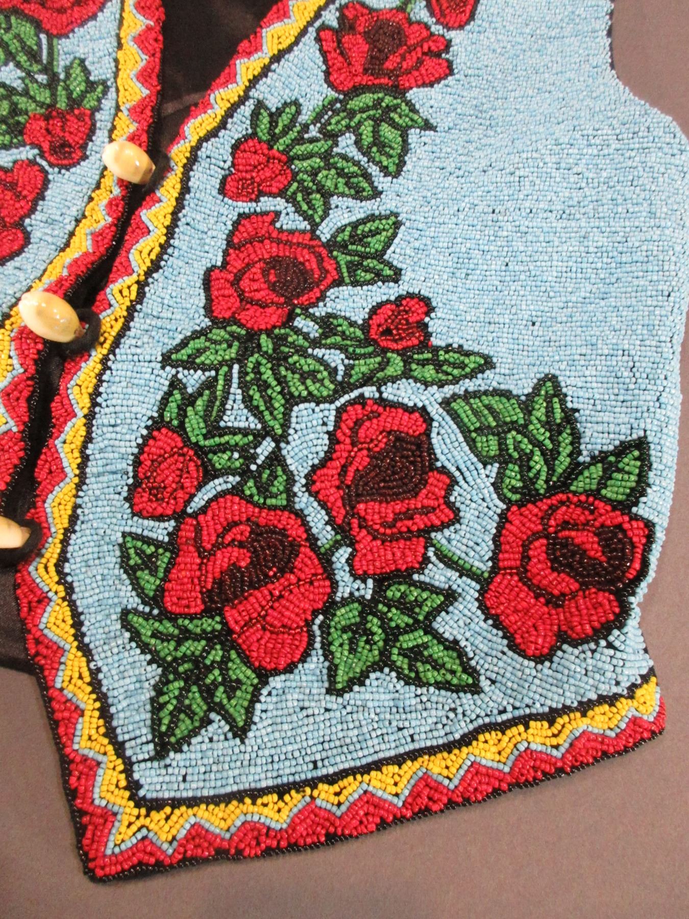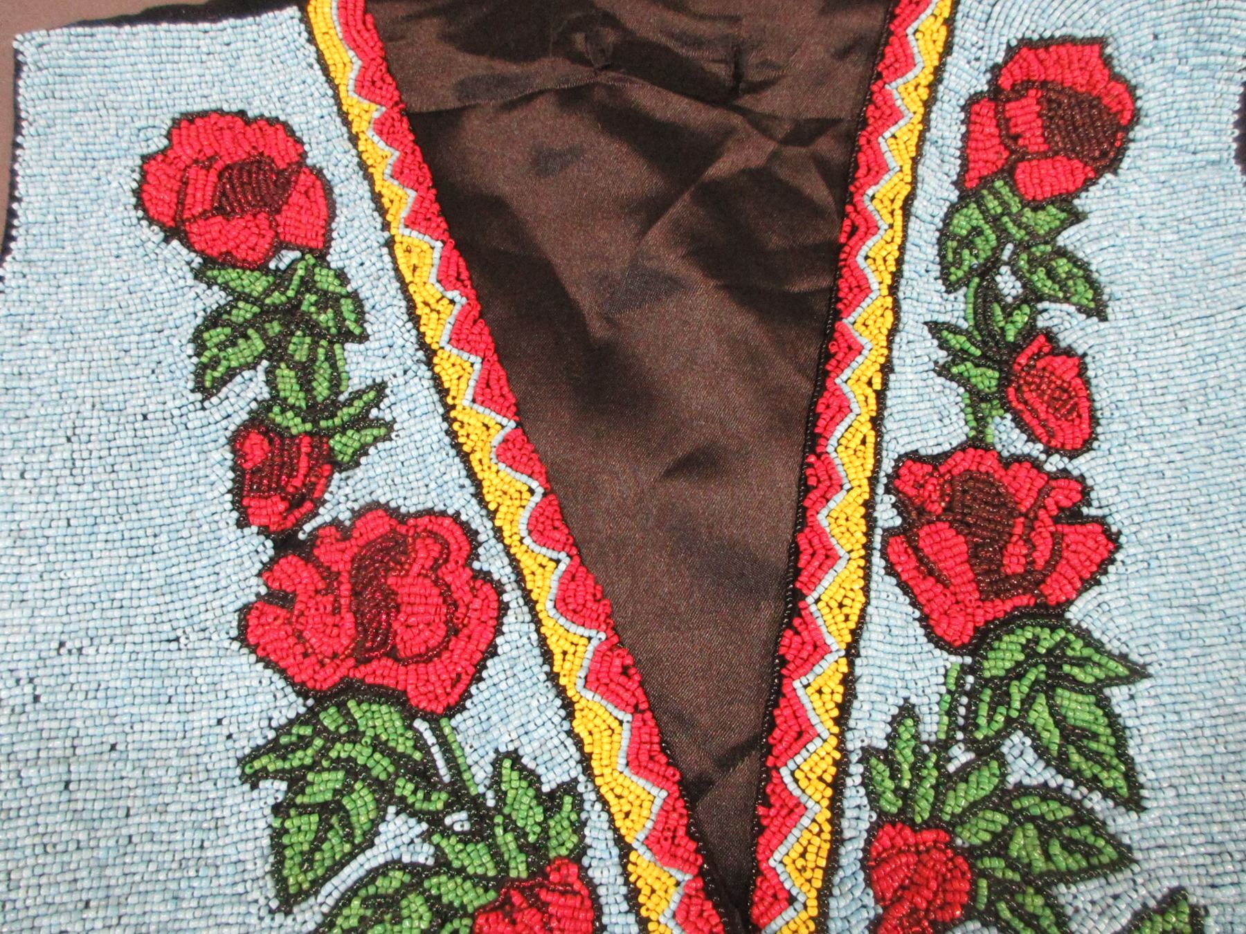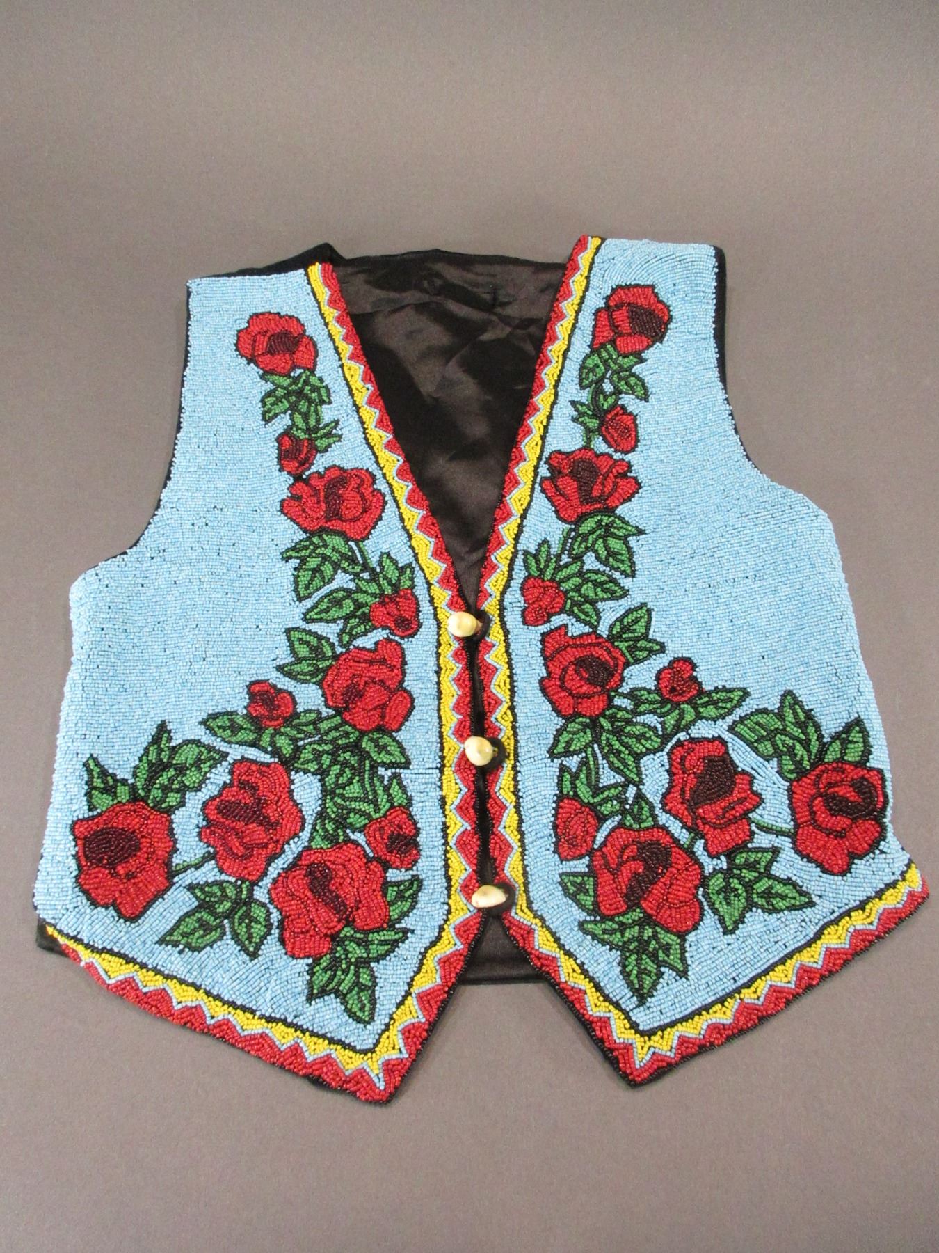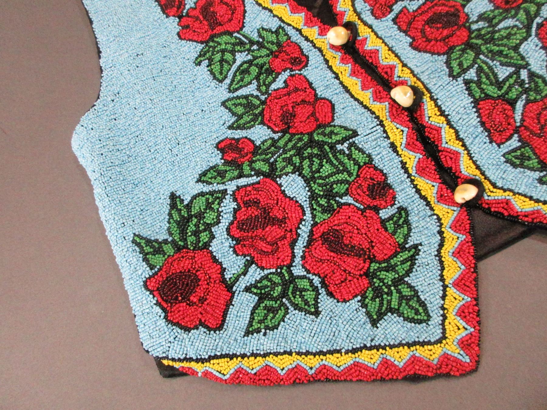 Ladies Floral Beaded Western Vest- Shell Buttons- 20" X 16"- Stand Not Included