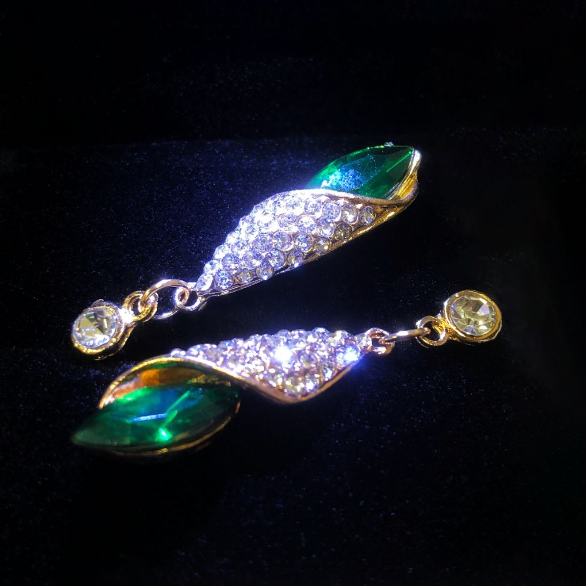 Eye Catching Faceted Crystal Zircon Emerald Stud Ladies Earrings. View Photos For Further Details. Â