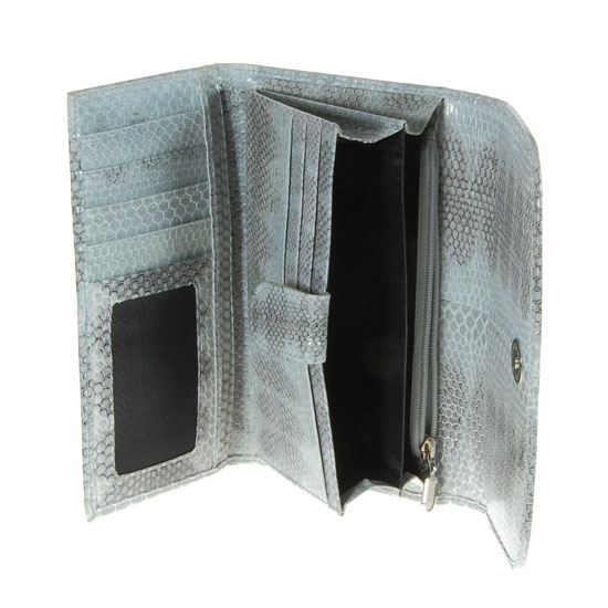 Well made; brand new ladies gray Sea Snake wallet. Multiple card and bill dividers inside as well as zippered section. Full snake skin inside too. A truly collectible accoutrement! .