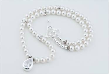 Ladies Hand Crafted Pearl Necklace "The General's Daughter" with Swarovski Crystal Pearls, Swarovski Crystal Tear Drop Focal, Rhinestones & Sterling Silver Components