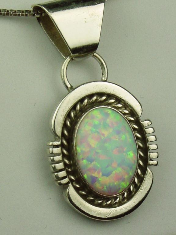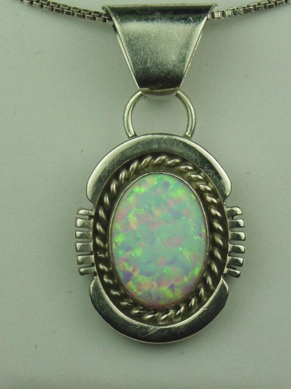 Ladies Handmade Sterling Silver Pendant Set with a fine play of color bezel set opal.Set with a fine play of color bezel set opal.