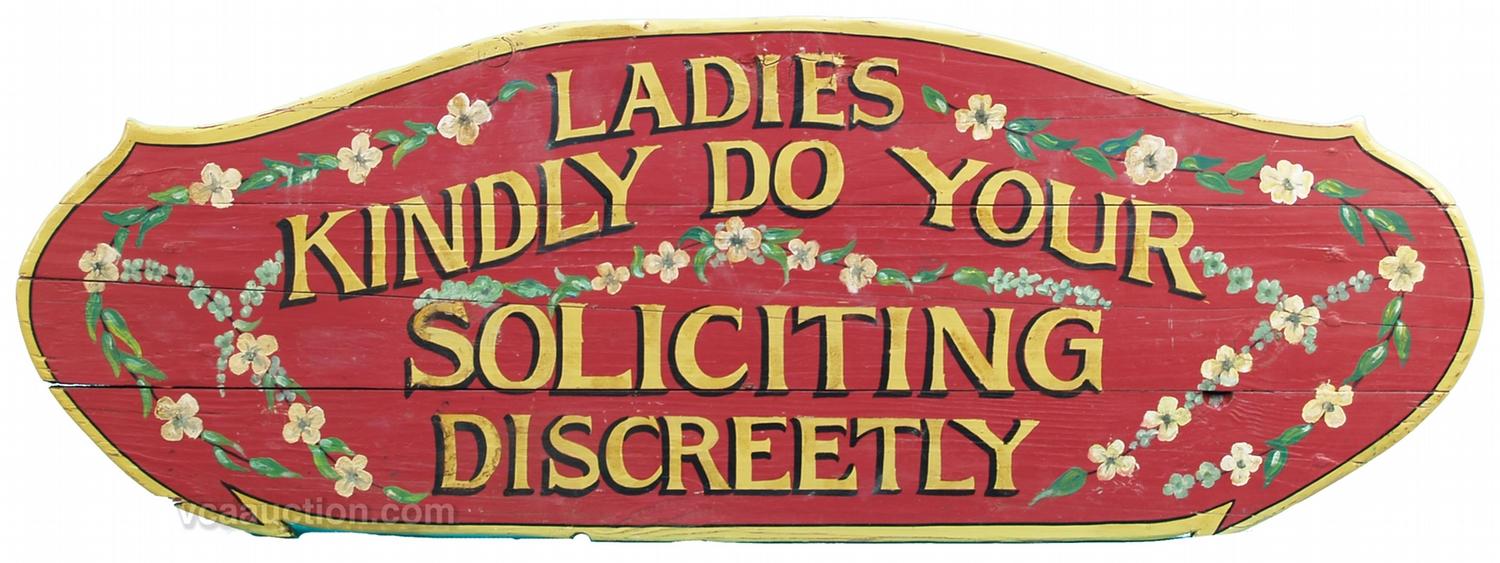 "Ladies Kindly Do Your Soliciting Discreetly" Wood Painted Sign - 41" x 15"