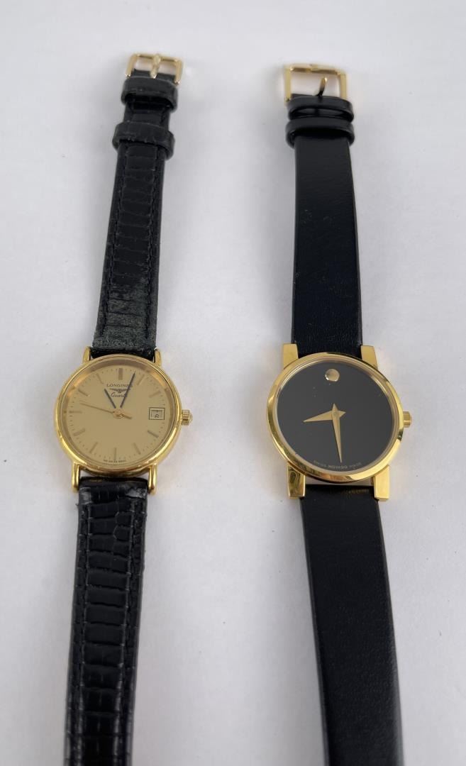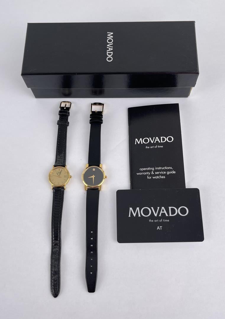 Nice pair of watches. The Movado has the box as shown.