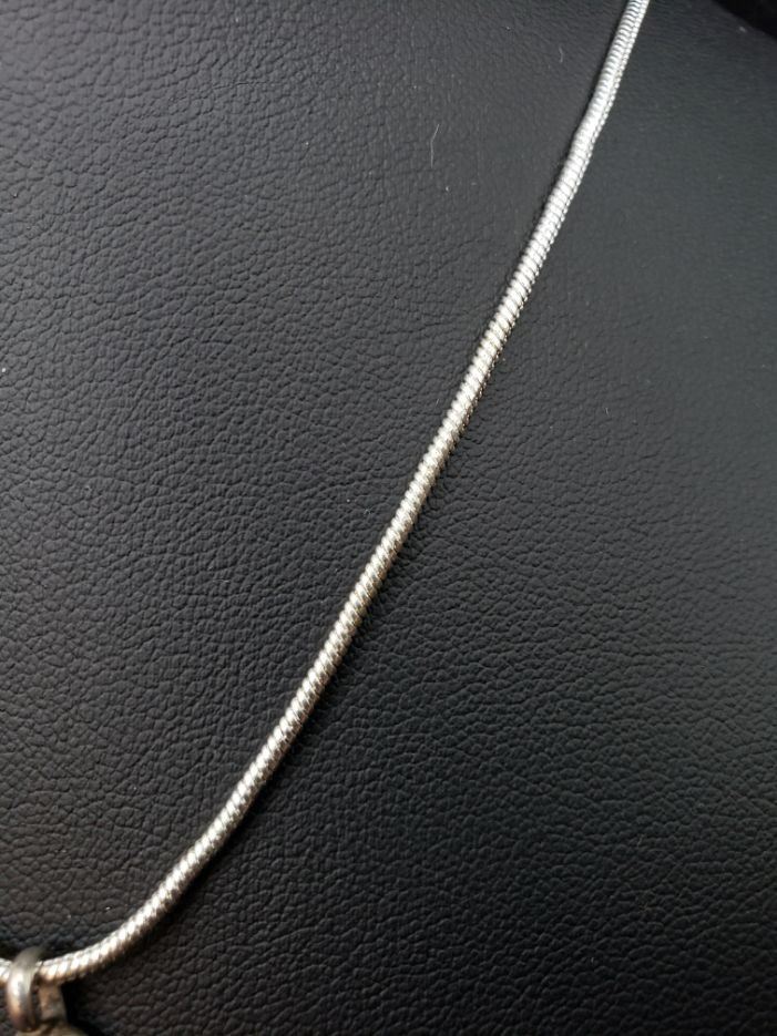 Oval cabochon cut mounted in solid .925 sterling silver. Weighs 11.5 total grams. Includes 20" chain