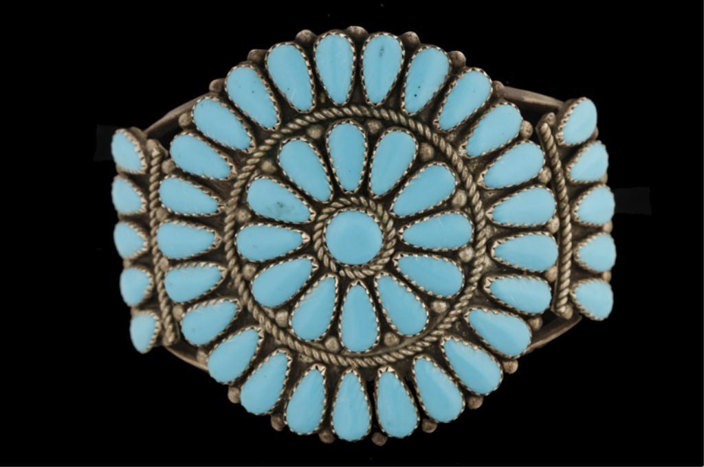 Ladies Navajo Turquoise Bracelet Set in sterling, old pawn design.Set in sterling, old pawn design.