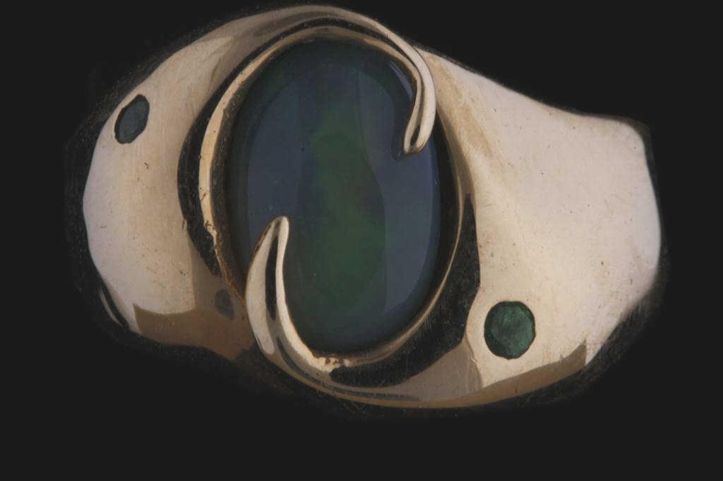 Ladies Opal Ring Set in 14K yellow gold with unique swirl design.Set in 14K yellow gold with unique swirl design.