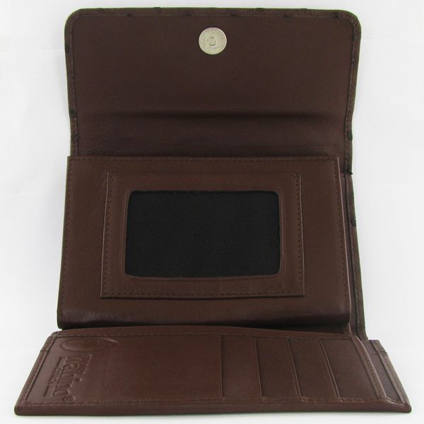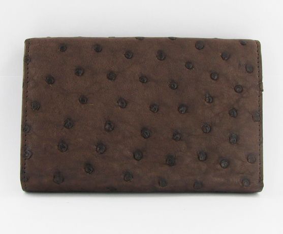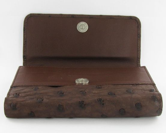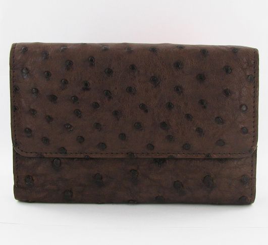 Well made; brand new ladies Ostrich hide clutch purse/wallet. 6" x 4" x 1" when folded. Dual inside sections; one zippered with dividers and one with multiple bill and card dividers. $595 retail.