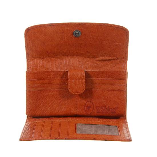 Well made; brand new ladies Ostrich hide clutch purse/wallet. 7.5" x 4" x 1" when folded. Dual inside sections; one zippered with multiple dividers and a smaller zippered section inside and one with multiple bill and card dividers. Ostrich skin inside as