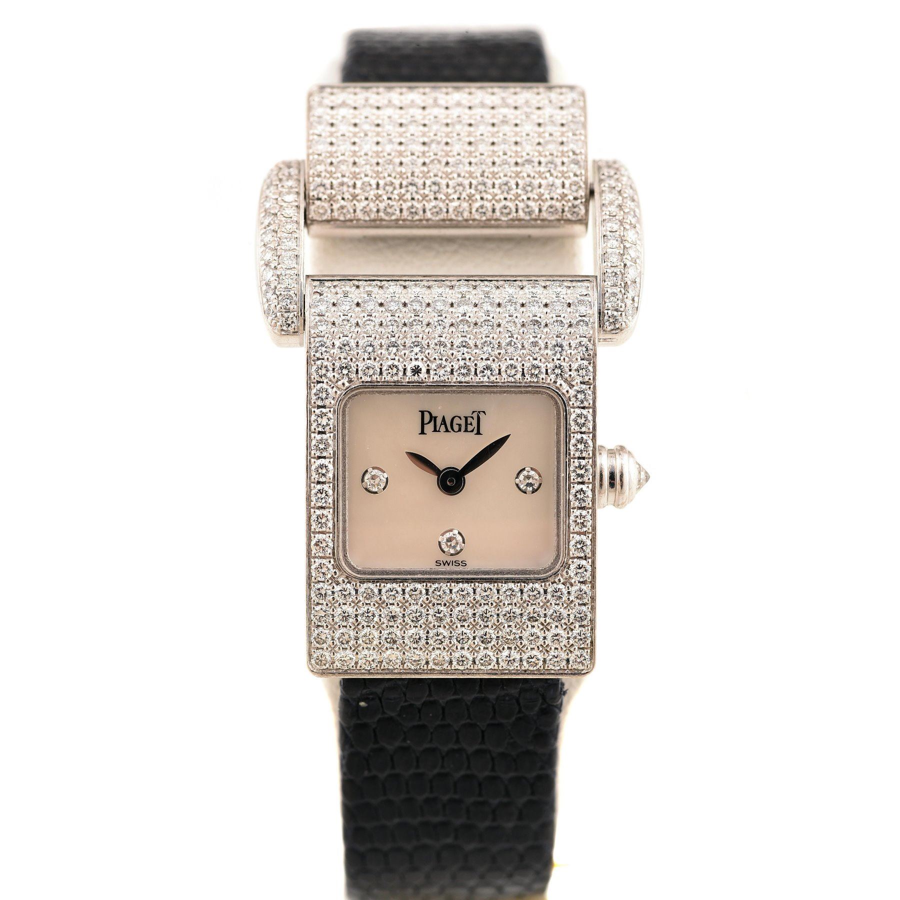 Ladies Piaget "Miss Protocole" Diamond, 18k White Gold, Leather Wristwatch.