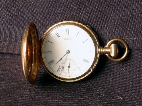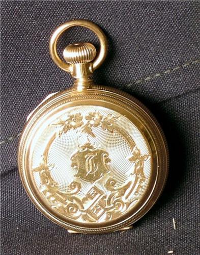 Ladies Pocket watch, lever set, 14 ct, detailed chase work, A.W. Co./ Waltham circa 1880, good working order