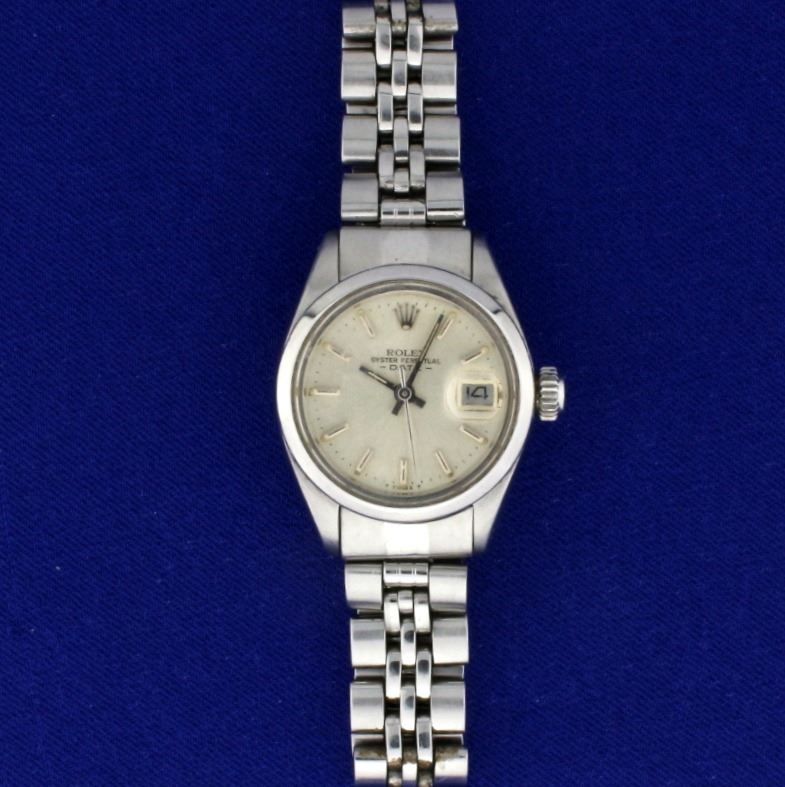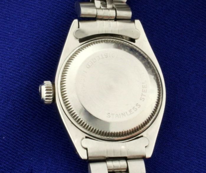Stainless steel. Watch was just cleaned and serviced so automatic movement runs great. It is in great condition with minimal scratching on crystal and band. Band does have some stretch. Serial number 5293674. Guaranteed all parts original and authentic.